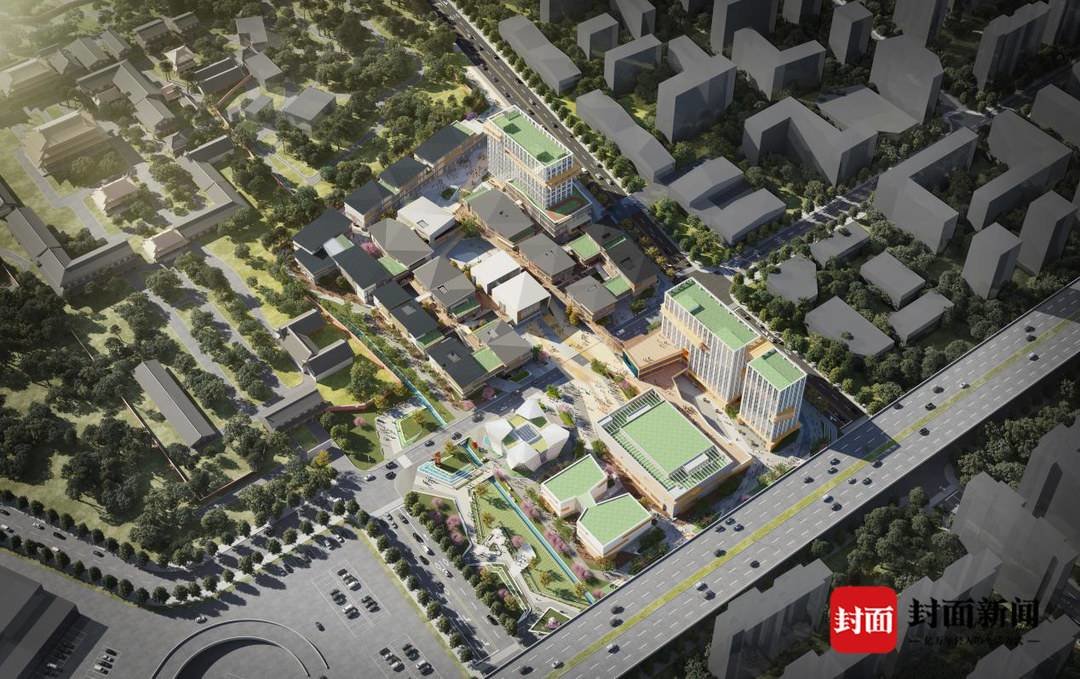 该项目位于成都市成华区青龙街道,毗邻动物园和昭觉寺,占地85.4亩,总建筑面积约12.6万平方米,分为A、B两个地块,目前正在进行外立面装饰、室内安装和装饰装修。