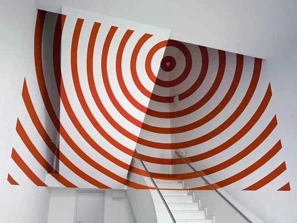 初次看到瓦里尼的作品,也许你会感到很困惑,这不就是一堆破碎的几何形状吗?但其实这些作品只有在特定的角度和高度才能看到出形状的错觉效果,当你移动到一个最佳视角时,完整的图案作品似乎从场景中突然蹦了出来。