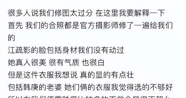 可心则表示合照是官方摄影师修整过的,自己没有对江疏影进行二次P图。