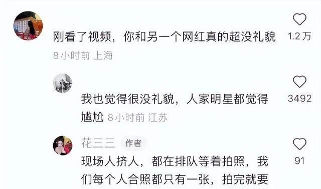 近日,网红花三三、可心在社交平台晒出了在某品牌活动上和卢靖姗、江疏影的合照,被质疑故意将自己P得很好看,而把明星P得很丑。随后有网友曝出了合照现场的视频,视频中两名网红与卢靖姗合影过后便径直走开,留下卢靖姗独自尴尬微笑,此举被不少网友认为是不尊重人的表现,并引来了很大的争议。
