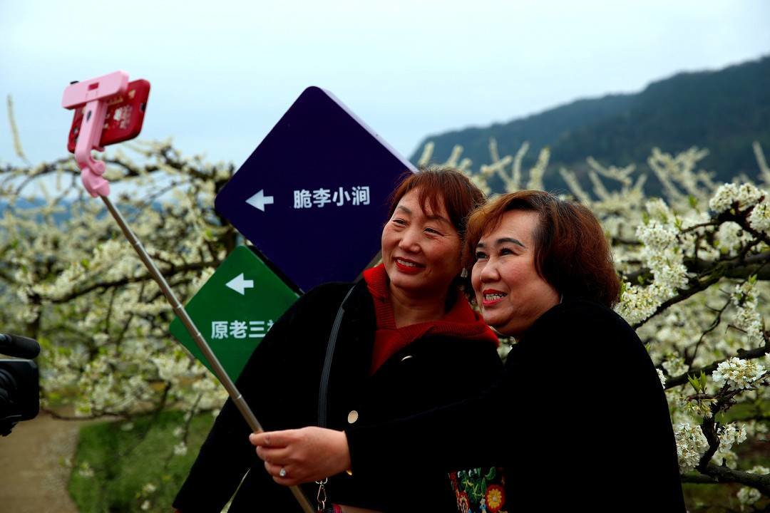 此次比赛还吸引了众多游客,他们一边欣赏着春天的景色,一边为参赛选手加油鼓劲。花间道、田埂边,到处是成群结队的游客,他们驻足李花旁,拿出手机与李花合影,定格美丽的一瞬。