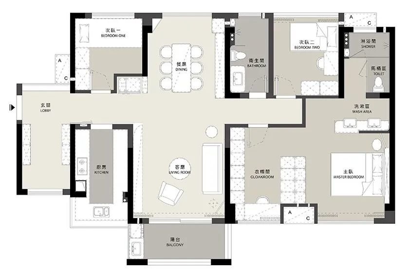 ▲主卫实现三分离设计,各个功能互不打扰,提高卫浴生活效率,也使得卫浴空间更加干净整洁。