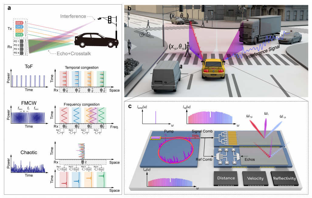 IT之家3月19日消息,据北京大学电子学院3月14日消息,北京大学电子学院王兴军教授课题组-常林研究员课题组在两年攻关的基础上,研制出一种全新的硅基片上多通道混沌光源,提出了一种基于混沌光梳的并行激光雷达架构,攻克了激光雷达抗干扰和高精度并行探测这两个世界性难题,保证高性能高安全的同时,极大降低未来激光雷达系统体积、复杂度、功耗和成本。