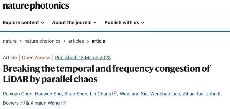 IT之家查询获悉,该团队的研究成果 “Breaking the temporal and frequency congestion of LiDAR by parallel chaos” 发表在 2023 年 3 月 13 日的《自然-光子学》(Nature Photonics)杂志。