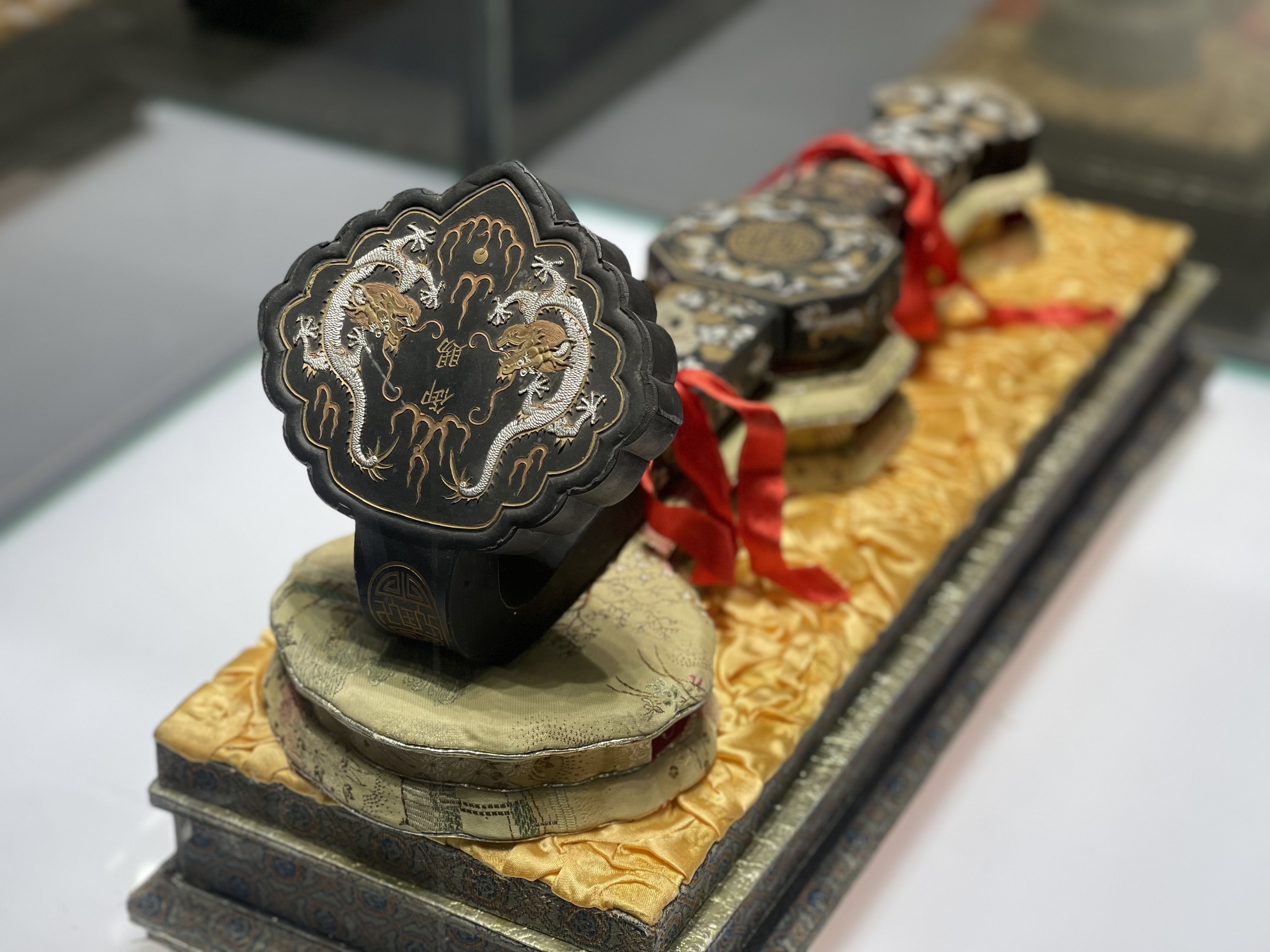 笔墨博物馆中收藏的名家墨锭。新华社记者孙丽萍 摄