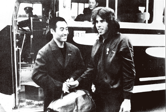 中国男子乒乓球运动员庄则栋,率先同上错车的美国运动员科恩打了招呼,并赠送了礼物。这一历史性画面被记者拍下,登上了世界各大报刊。