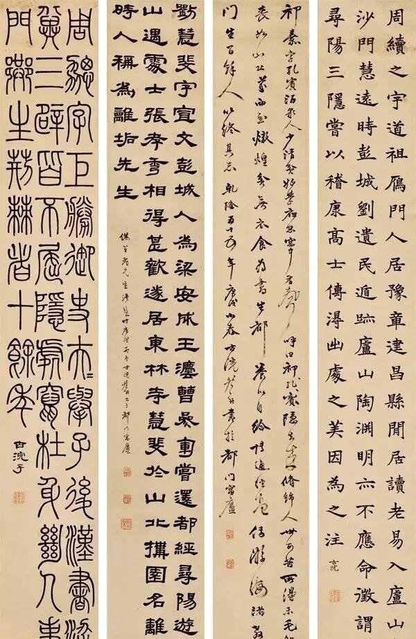 清 邓石如 赠曹俪笙四体书四条屏 安徽博物院藏