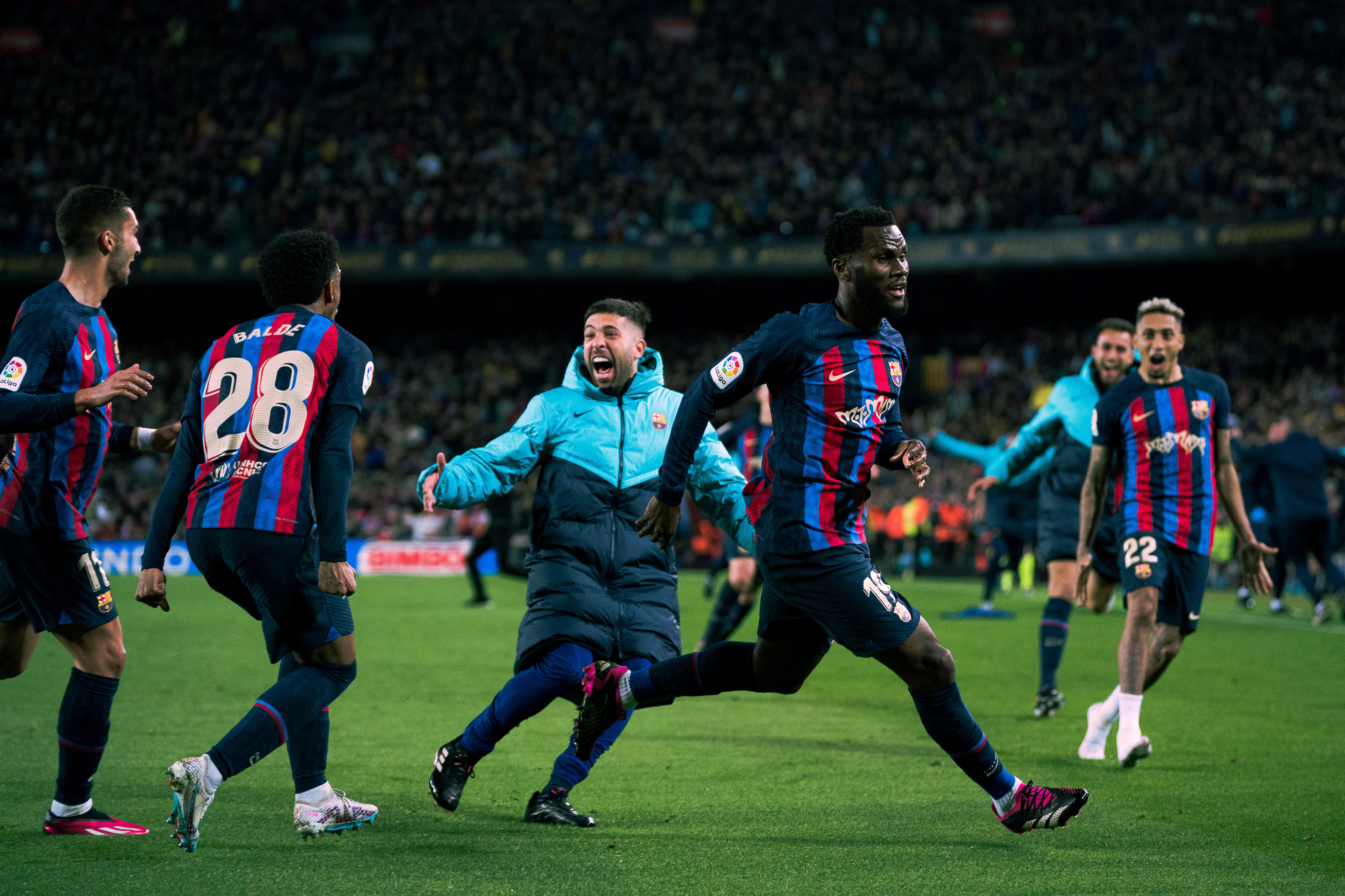 开场后,巴萨向皇马球门发起猛攻,皇马门将库尔图瓦两次救险。第九分钟,皇马球员维尼修斯禁区左路带球至底线附近后送出传中,巴萨球员阿劳霍在解围时不慎头球顶入自家大门。不过巴萨在上半场行将结束时将比分扳平:第45分钟,主队在皇马门前制造混乱,拉菲尼亚的射门被对方防守球员挡出,塞尔吉·罗伯托点球点附近停球后将球补入。
