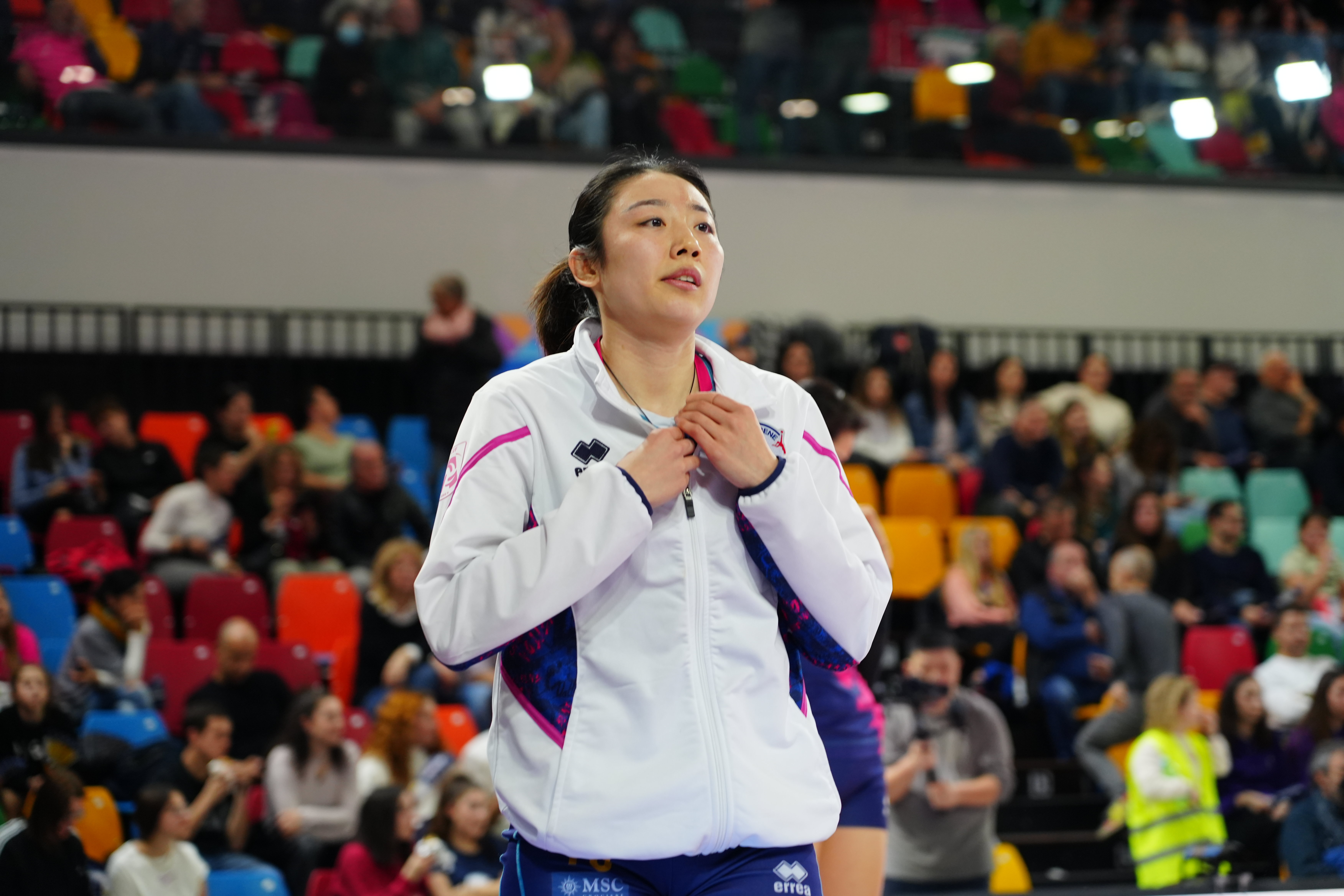 3月19日,斯坎迪奇队球员朱婷(右二)、姚迪(左二)在比赛中。新华社记者 周啸天 摄