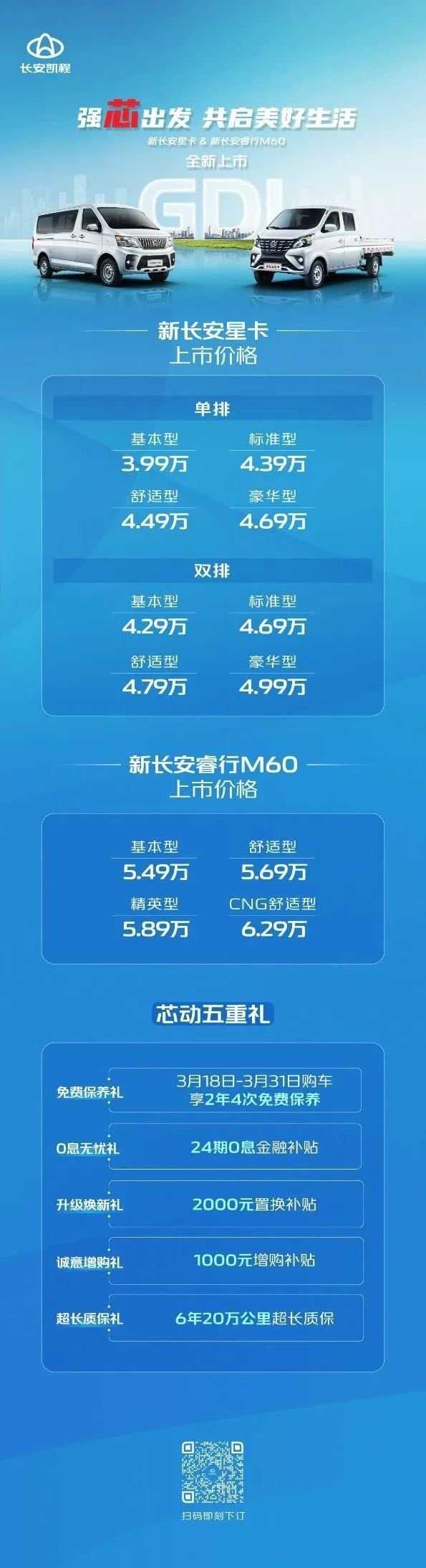 最低不到4万再辅以给力的芯”动五重礼,新长安星卡&新长安睿行M60,妥妥创富路上最佳好帮手。
