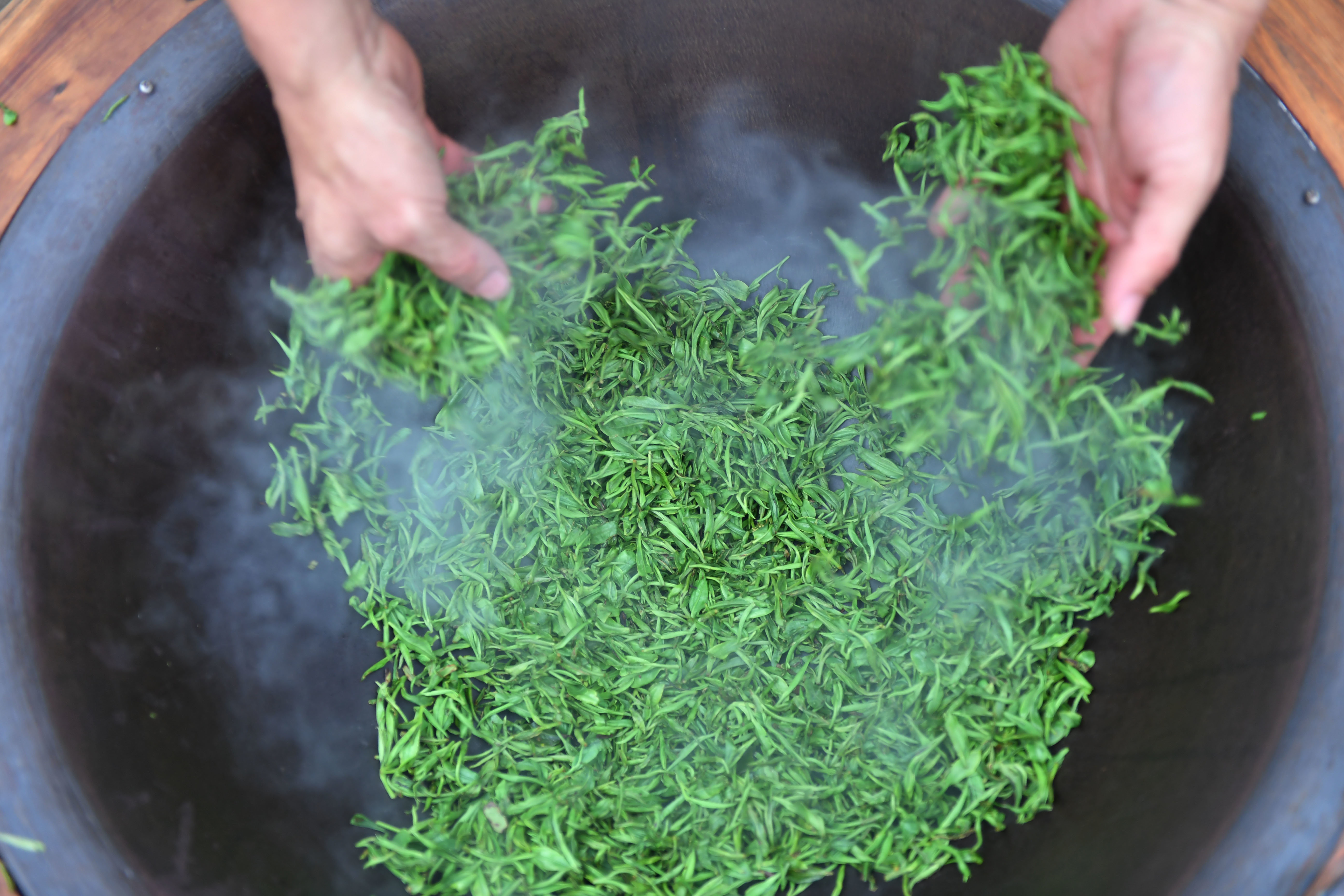 3月20日,在湖南衡阳常宁市塔山瑶族乡,茶农在炒茶。新华社记者 赵众志 摄