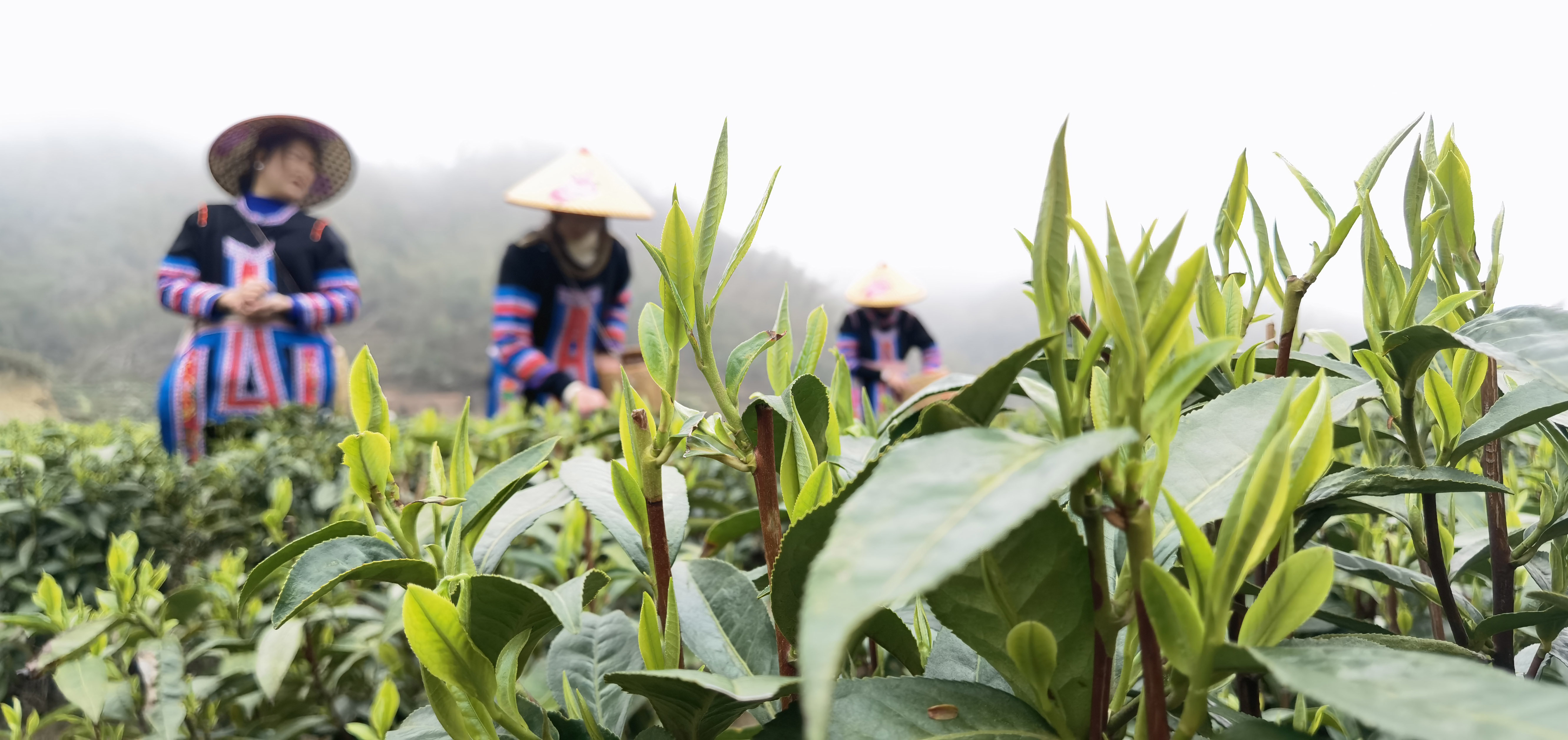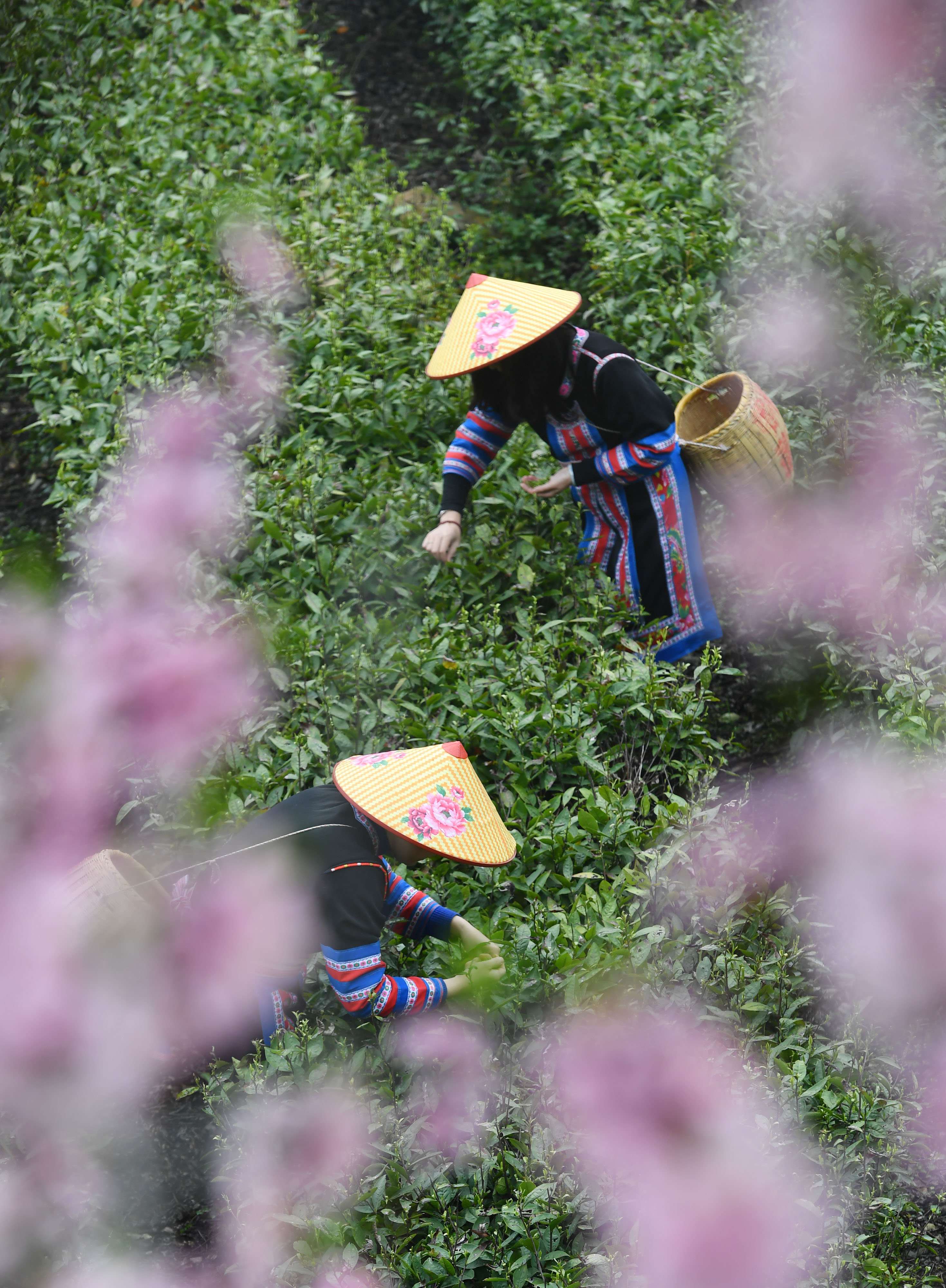 3月20日,在湖南衡阳常宁市塔山瑶族乡,茶农在茶园采茶。新华社记者 赵众志 摄