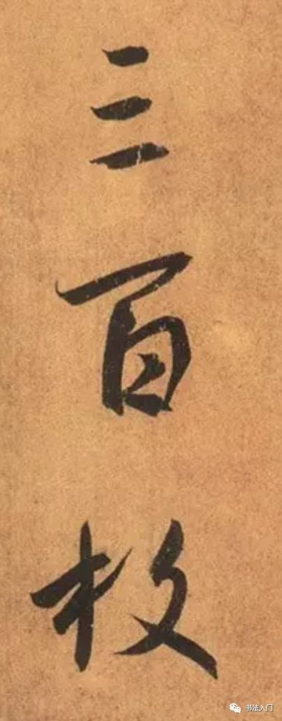 《奉橘帖》中的“三”字、“百” 字、“枚”字和两个“未”字的横画入笔方是王羲之笔法精髓的真实显现,其要旨为用尖锋落笔混成,点入的动作短促捷急之极,是一种“啄击”之势,可谓“兔起鹘落”。