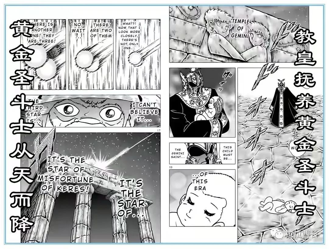 真正实锤了十二宫黄金圣斗士是为内定的剧情,主要是出自漫画家车田正美于2018年12月19日在《月刊冠军RED》上所发表的短篇外传漫画《圣斗士星矢ORIGIN》(圣斗士星矢:源起),在这部短篇外传中,就出现了女神将十三黄金(双子座两个)空降于圣域,交由教皇史昂所抚养的情节。