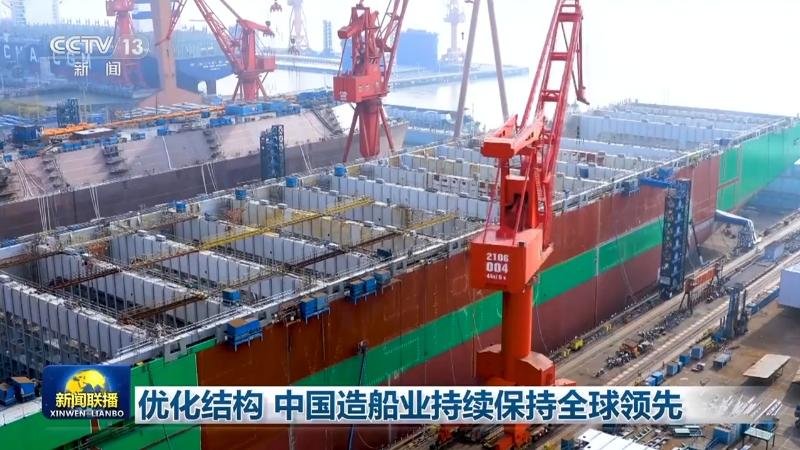 央视网消息 (新闻联播):最新数据显示,今年前两个月,我国造船业新接订单量占到全球市场份额的62%。截至2022年,已连续13年位居全球第一。在市场份额不断扩大的同时,通过优化产品结构,大量高技术船舶成为中国造船业高质量发展的新亮点。