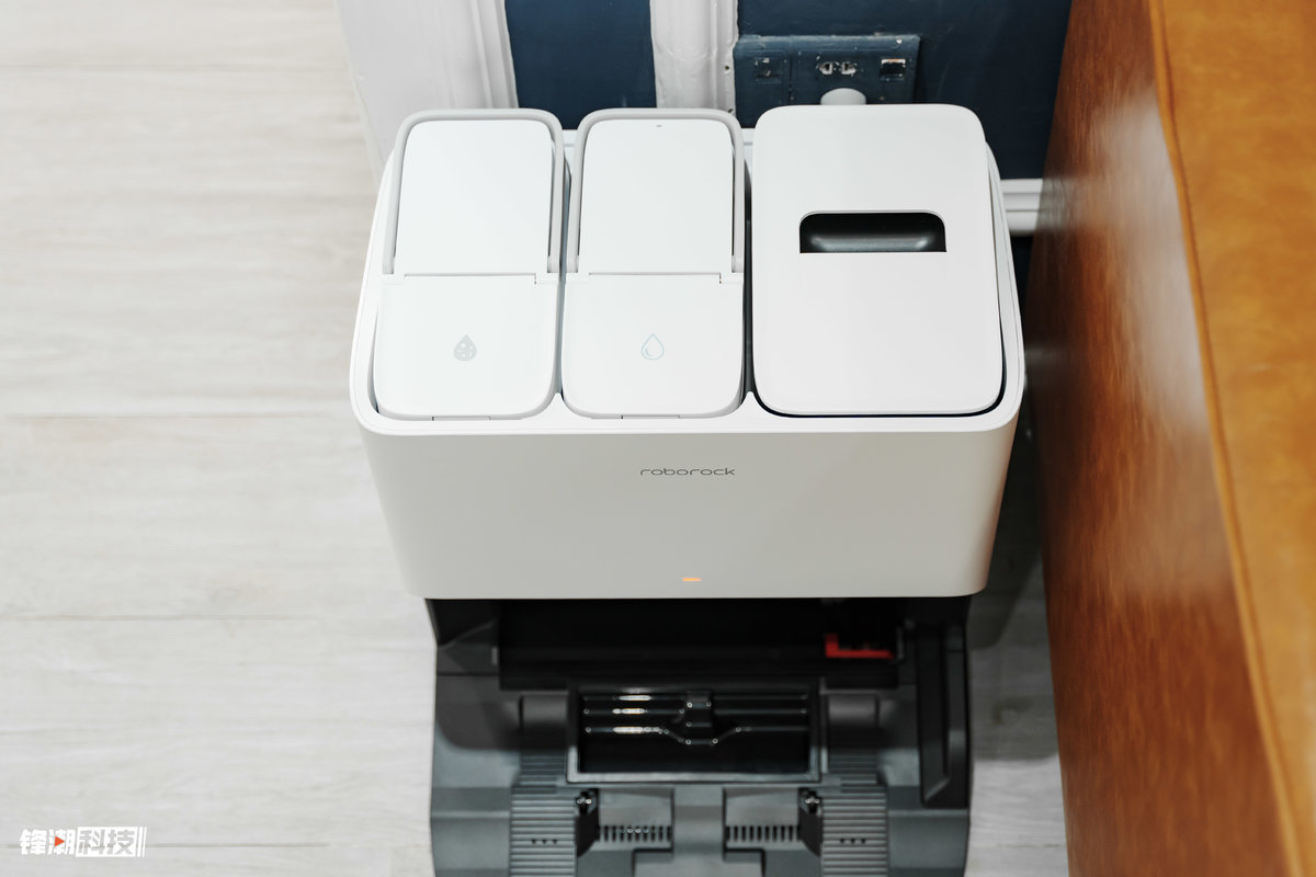 石头G20 的高能基站保留了主动式清洁洗布策略,双动力拖布自清洁模式也得到了延续。基站的清水箱增大到 3.5L,污水箱则增加到 2.9L,还有 2.5L 容量的集尘袋,可以满足 60 天不倒垃圾,确实做到了科技简化生活。