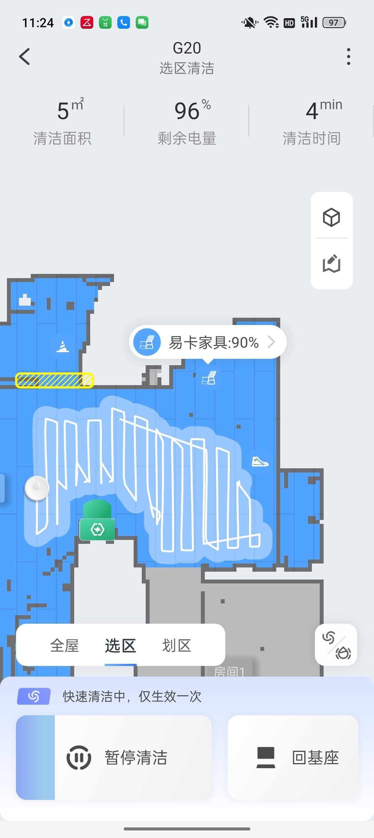 面对需要高效清洁的朋友,石头G20 新增了快速清洁模式,在 APP 中的清洁路线就可以直接选用,在这个模式下机器人会在满足清洁需求的同时,尽可能缩短清洁时间,提升清洁效率。
