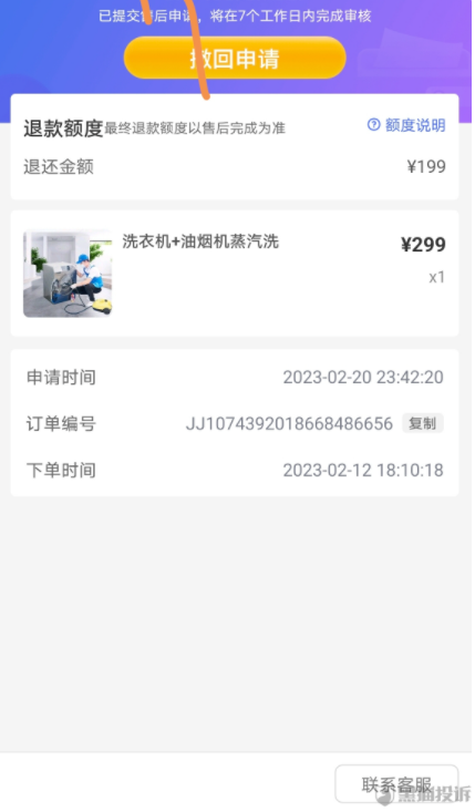 消费者表示:前些天在轻喜到家预约一个清洗油烟机加洗衣机的服务。等到预约好的前一天晚上打电话说洗衣机没有我要的清洗服务。让我退款。我就申请退款了。结果一直拖拖拉拉不退。然后我今天打开发现退款还得扣80元。好家伙。不能提供服务就算了,还要扣我钱。到现在一分钱也没有退,无耻至极,大家不要上当。