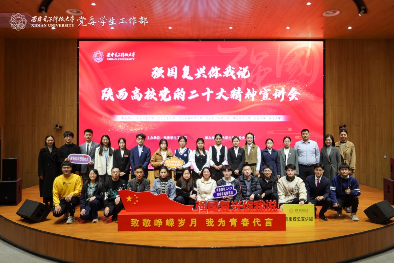 3月17日下午,由西安电子科技大学党委学工部联合陕西高校青年爱国奋斗宣讲联盟共同举办的“强国复兴你我说”党的二十大精神宣讲活动在西电南校区网安大楼B101报告厅举行,来自西安交通大学、西北工业大学、西北农林科技大学、西安电子科技大学、陕西师范大学、长安大学、西北大学等7所高校的大学生宣讲员围绕中国式现代化道路、科技创新、生态文明、乡村振兴、党的二十大精神与青年等不同主题,把“书面语”翻译成“知心话”,把“专业事”讲成“身边事”,饱含热情、生动形象地宣传党的二十大精神。