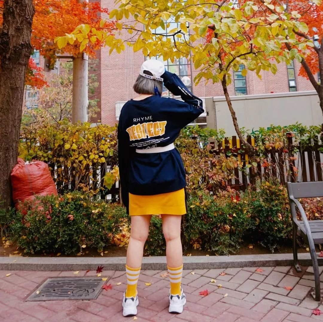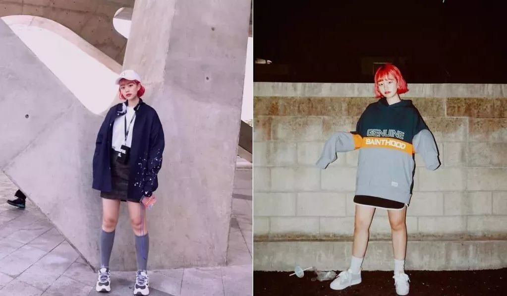 另外,oversize的上衣能起到转移视觉注意的效果,让人们忽视腿部的肉肉,小伙伴们可以试一下哦~