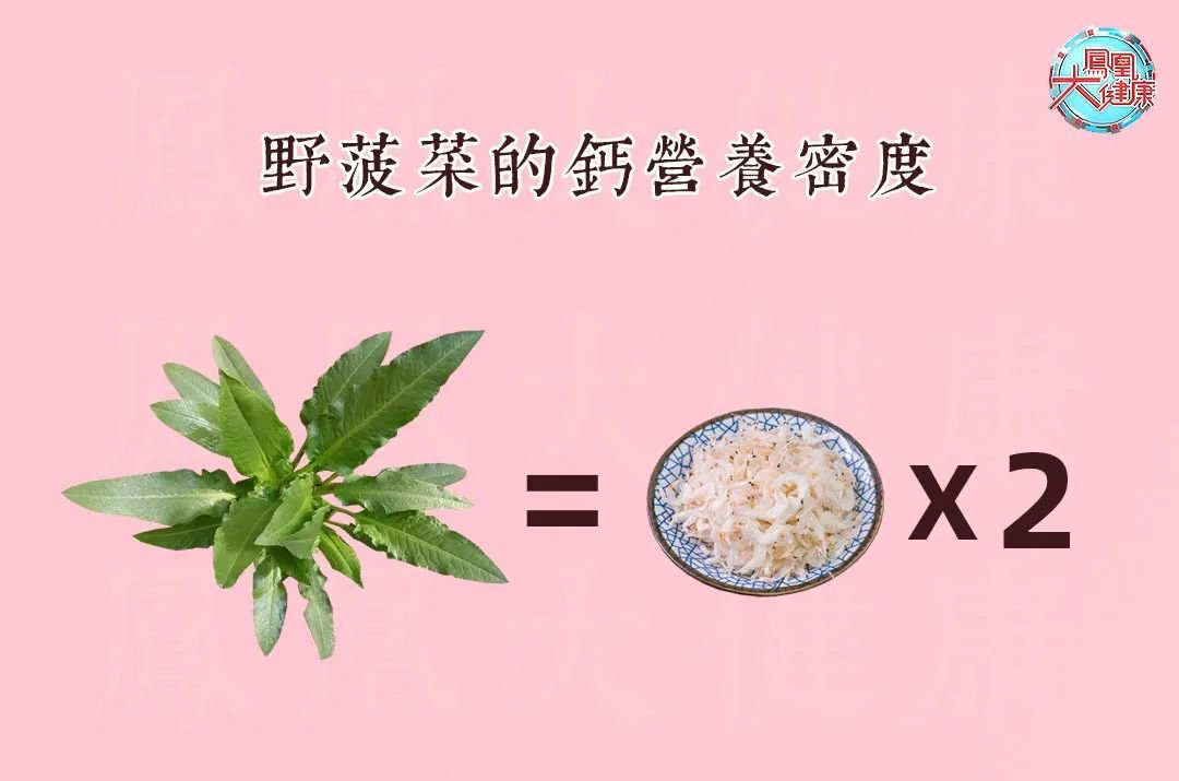 野菠菜除了富含膳食纤维外,最让人意外的是它还是一个钙含量较多的食物,其钙含量是虾皮的两倍,野菠菜的钙营养素密度为1360mg,而虾皮仅为648mg。