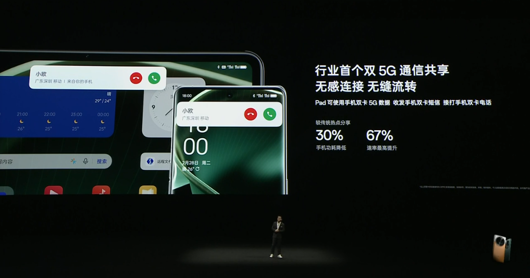 值得一提的是,用户可以通过将自己的 OPPO Pad与 OPPO Find X6 系列手机建立连接,实现 Wi-Fi 平板的 5G 体验。该通信共享是基于 OPPO 的潘塔纳尔智慧跨端系统,不需个人热点分享,也不需手机平板在同一个局域网,也能实现平板接打电话,收发短信的功能,功耗比网络共享低很多。