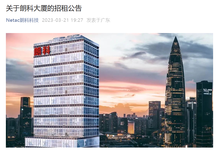 朗科科技发布了《关于朗科大厦的招租公告》,拟对朗科大厦 2F-14F 楼层公开招租寻求意向承租企业。
