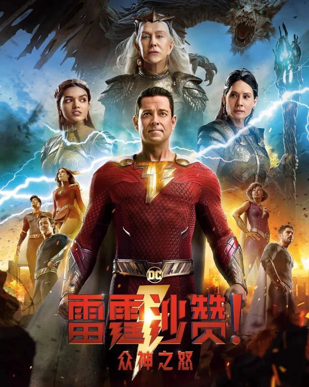 DC电影公司超级英雄电影《雷霆沙赞!众神之怒》(Shazam! Fury of the Gods)在2023年3月17日于中国、美国同步上映,演员阵容云集美国影星扎克瑞·莱维、好莱坞华裔影视明星刘玉玲、第79届奥斯卡奖最佳女主角得主海伦·米伦等,堪称今年的DC电影年度大作。
