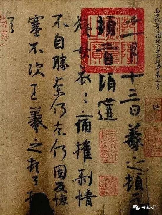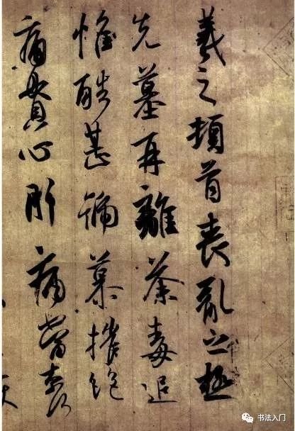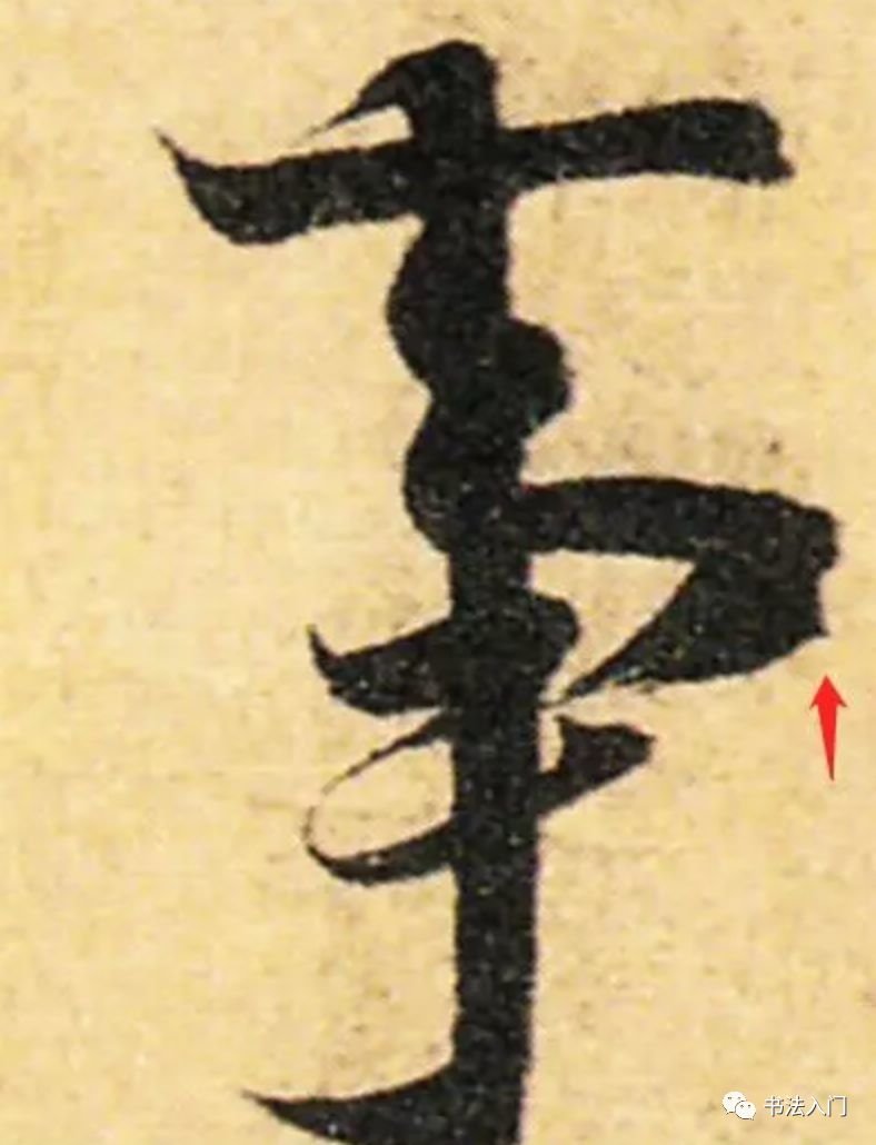 西晋的陆机《平复帖》以转笔书写, 如图3所示。书圣王羲之的早期作品《姨母帖》亦是古法用笔,如图4所示。
