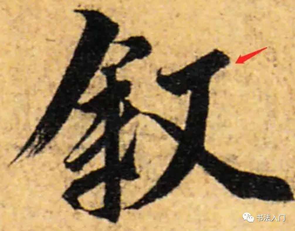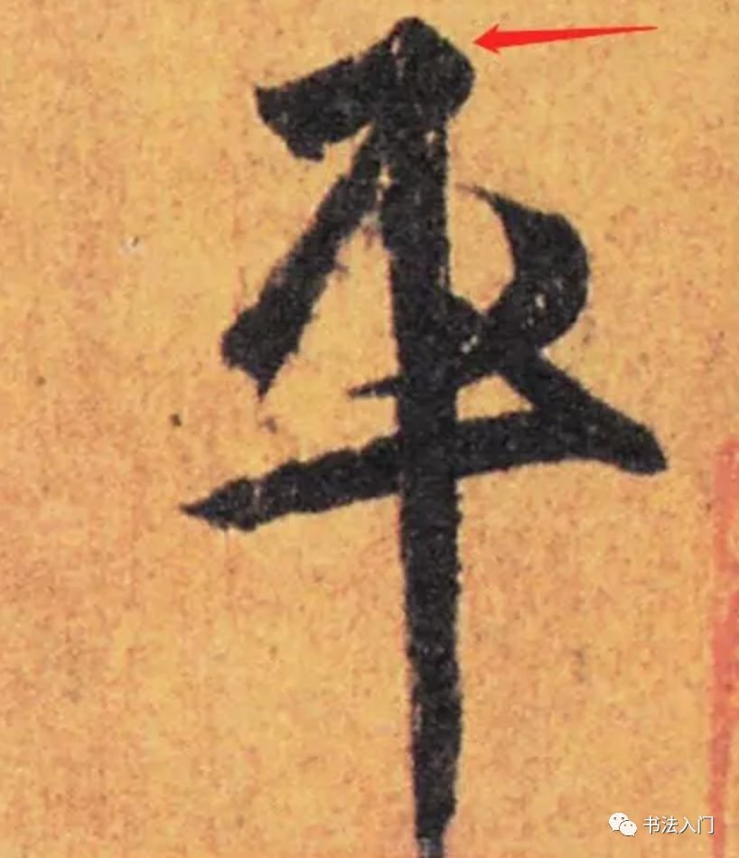 顾名思义,毛笔行至折笔处,边运笔边往右下加压,然后折笔写出。该折笔的右上方常常出现圆转的轮廓。如图27、图28、图29所示。