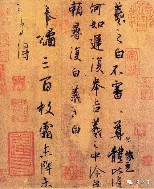 王羲之后期的作品就是新法用笔,如《何如、奉橘帖》、《丧乱帖》等,见图6、图7。具有“直折” 的例字,见图8、图9。