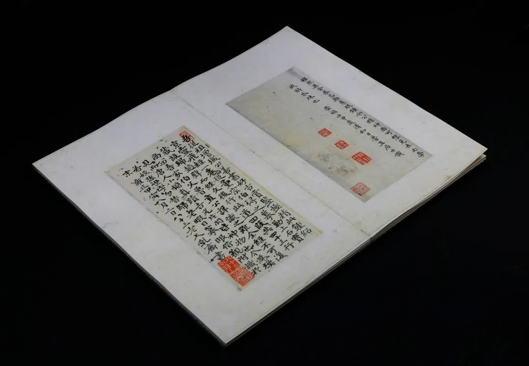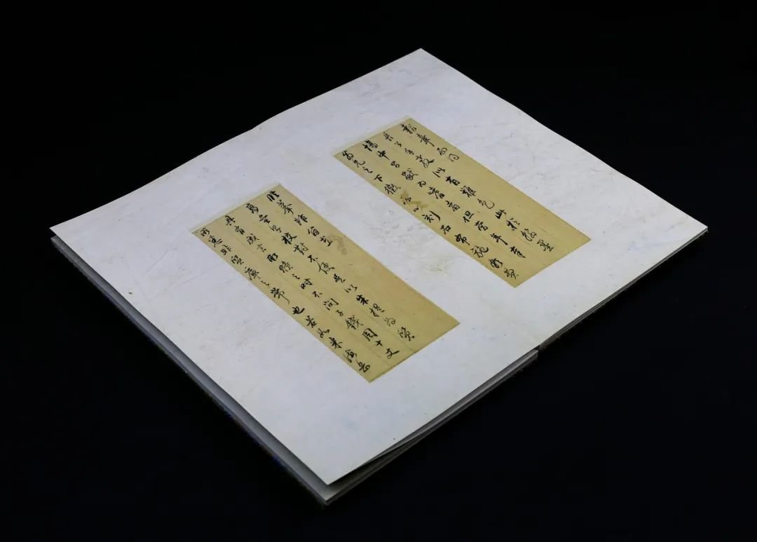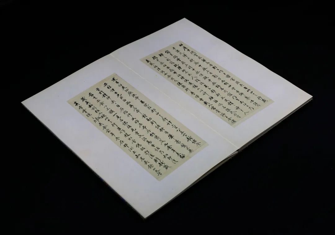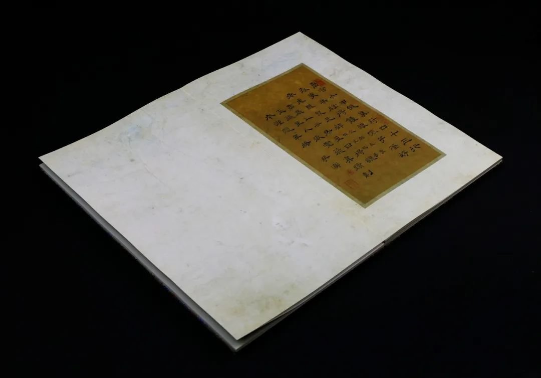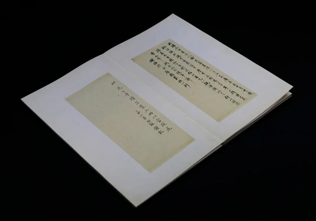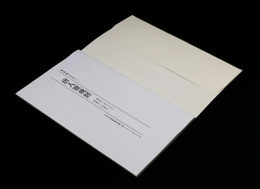 墨迹、渤海本尺寸不一,定制牛卡纸放置渤海本,既保存了渤海本原来的尺寸,又可贴合放置同一函套,制作新颖。