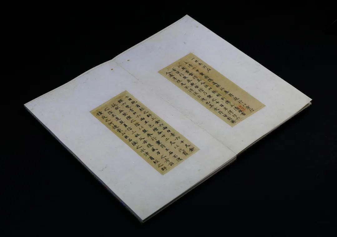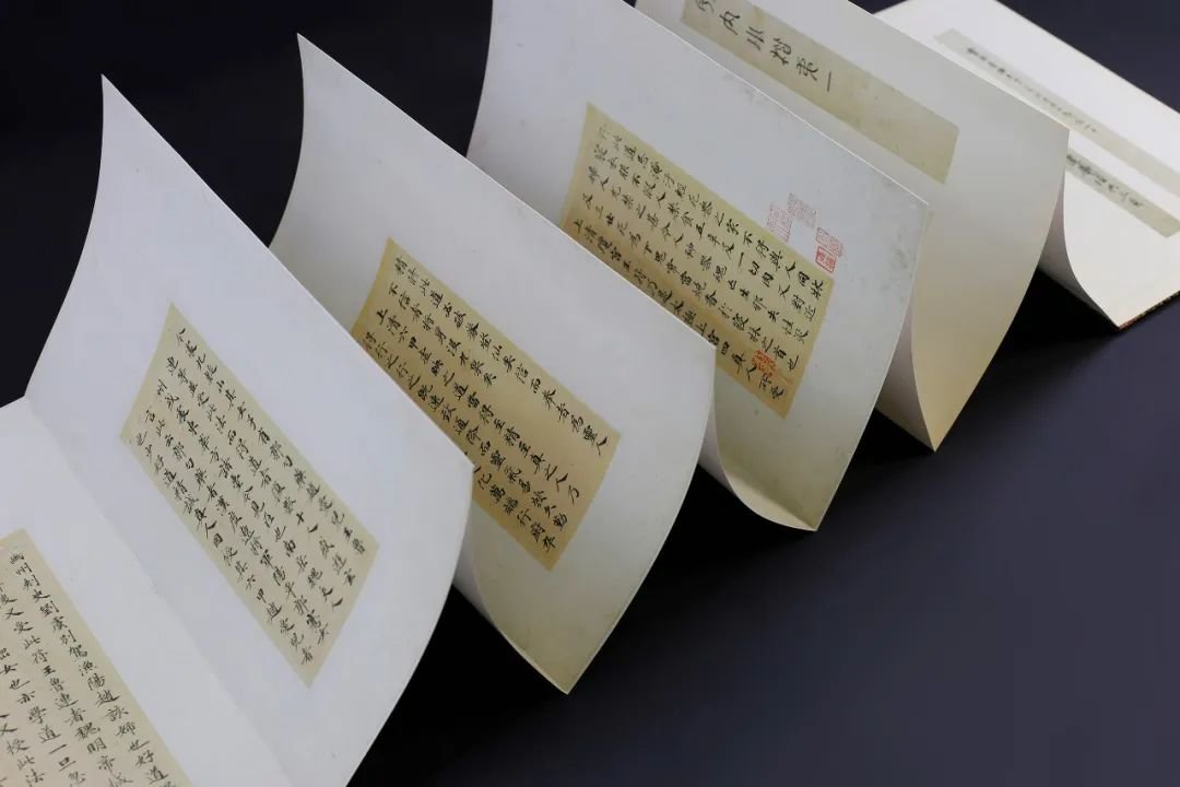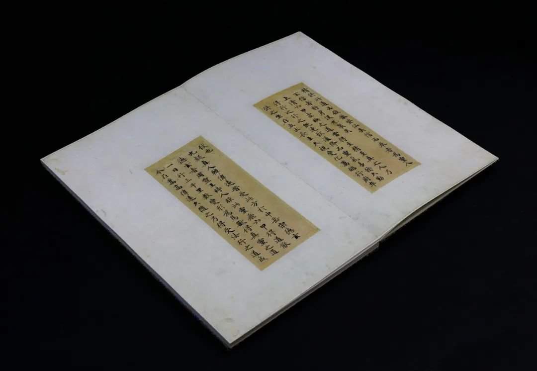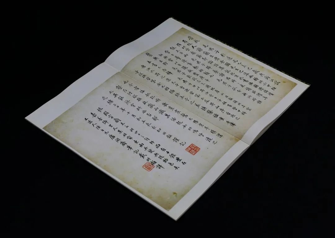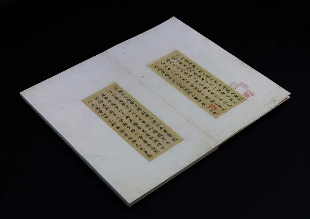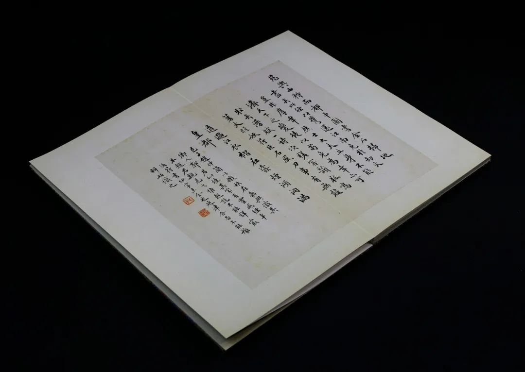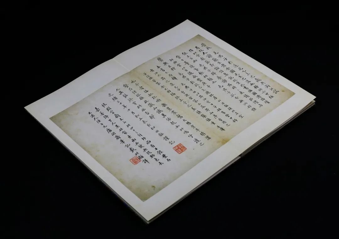 墨迹、渤海本尺寸不一,定制牛卡纸放置渤海本,既保存了渤海本原来的尺寸,又可贴合放置同一函套,制作新颖。