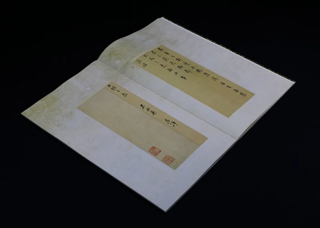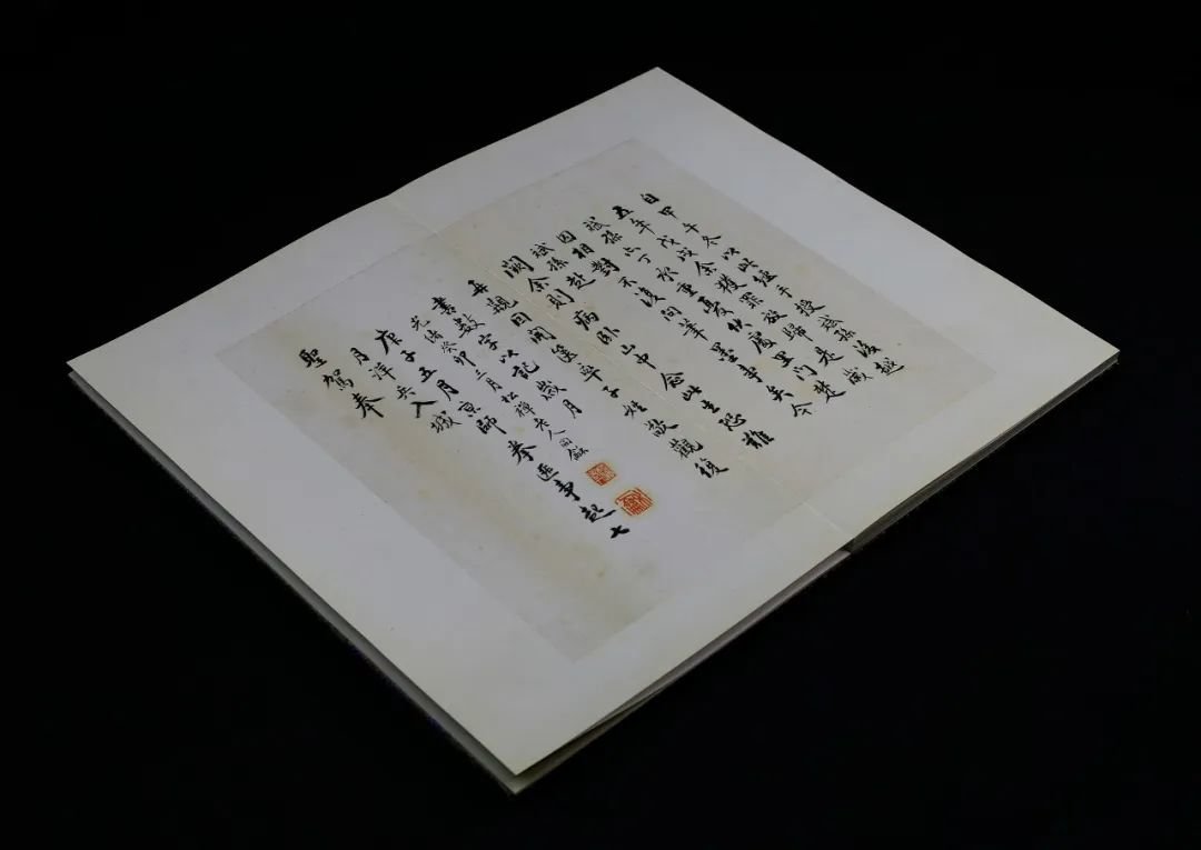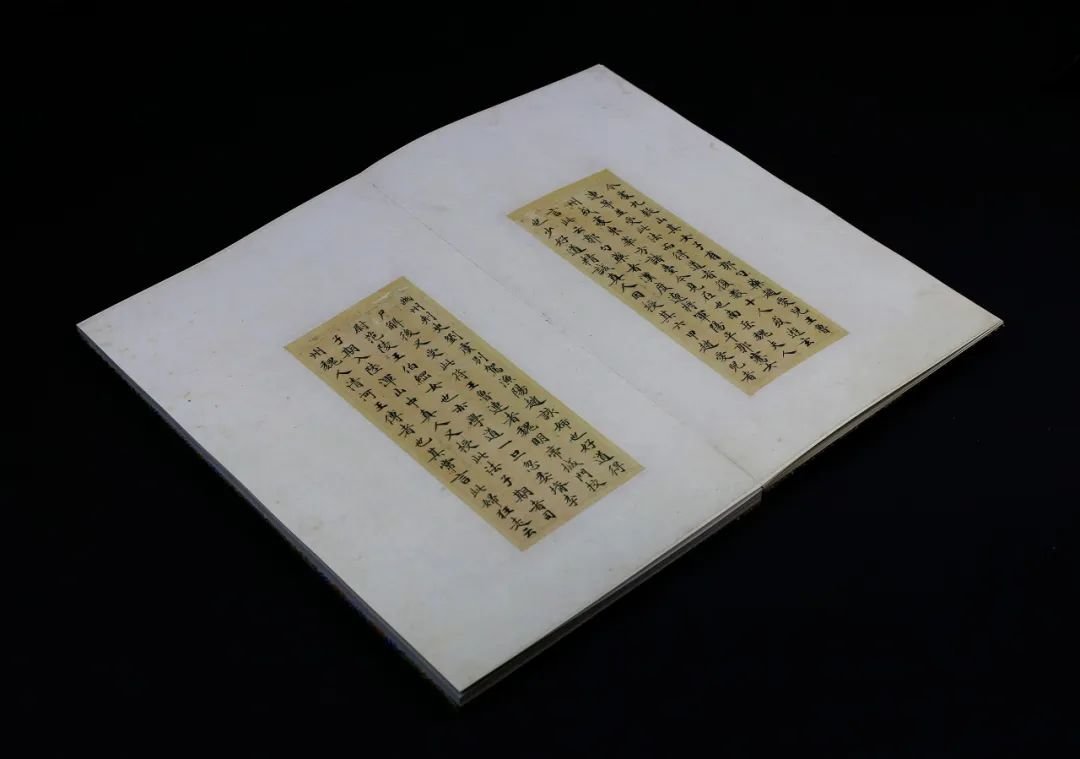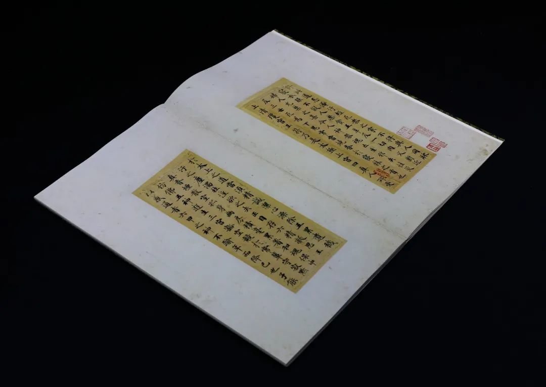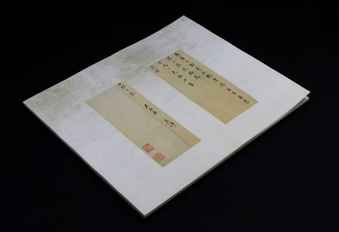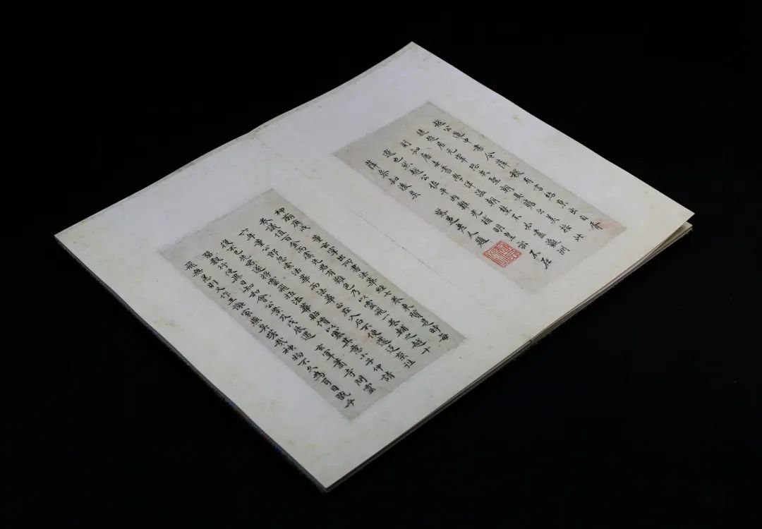 墨迹、渤海本尺寸不一,定制牛卡纸放置渤海本,既保存了渤海本原来的尺寸,又可贴合放置同一函套,制作新颖。