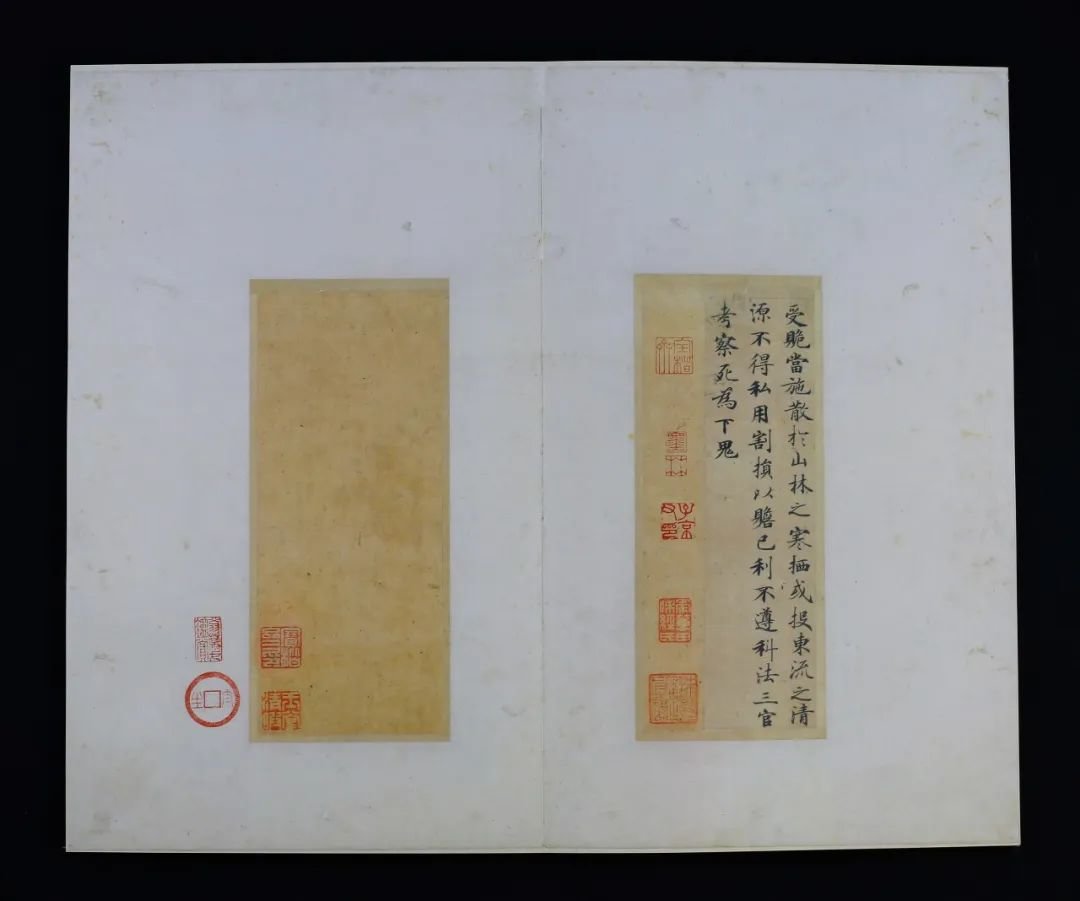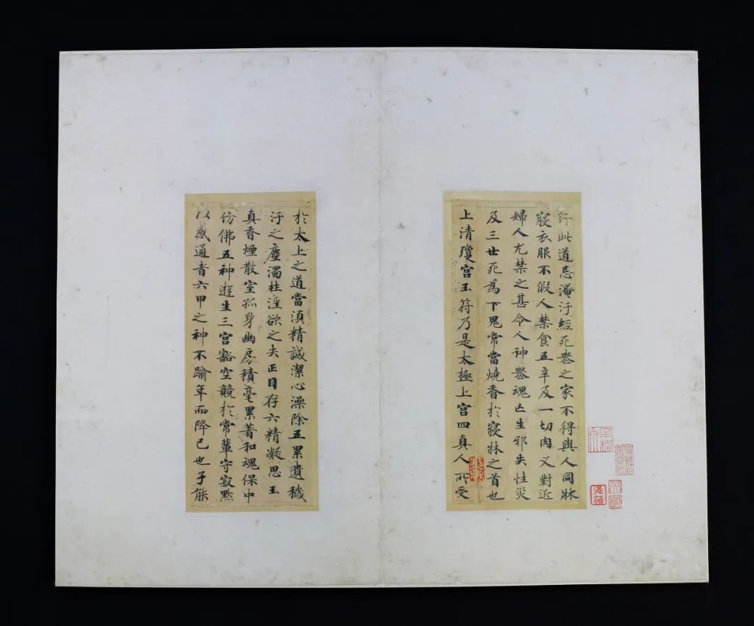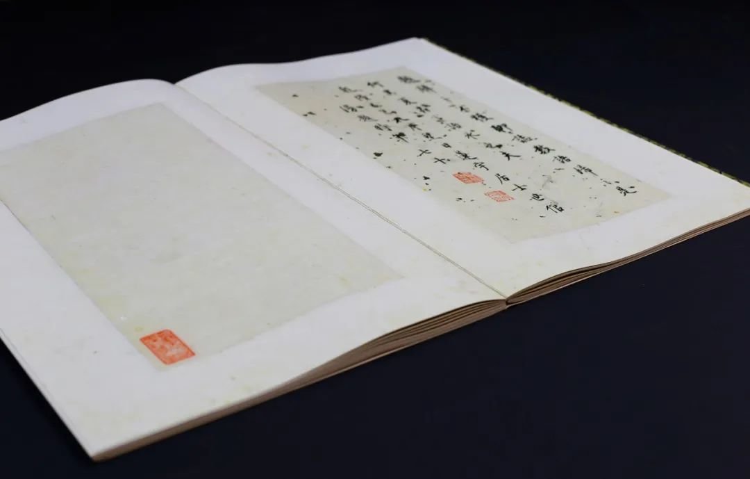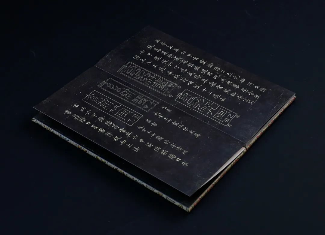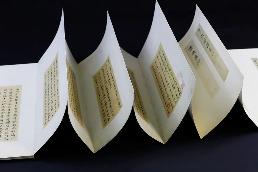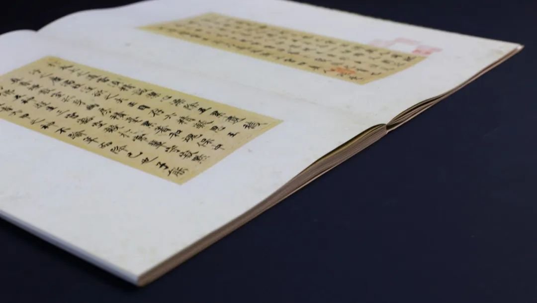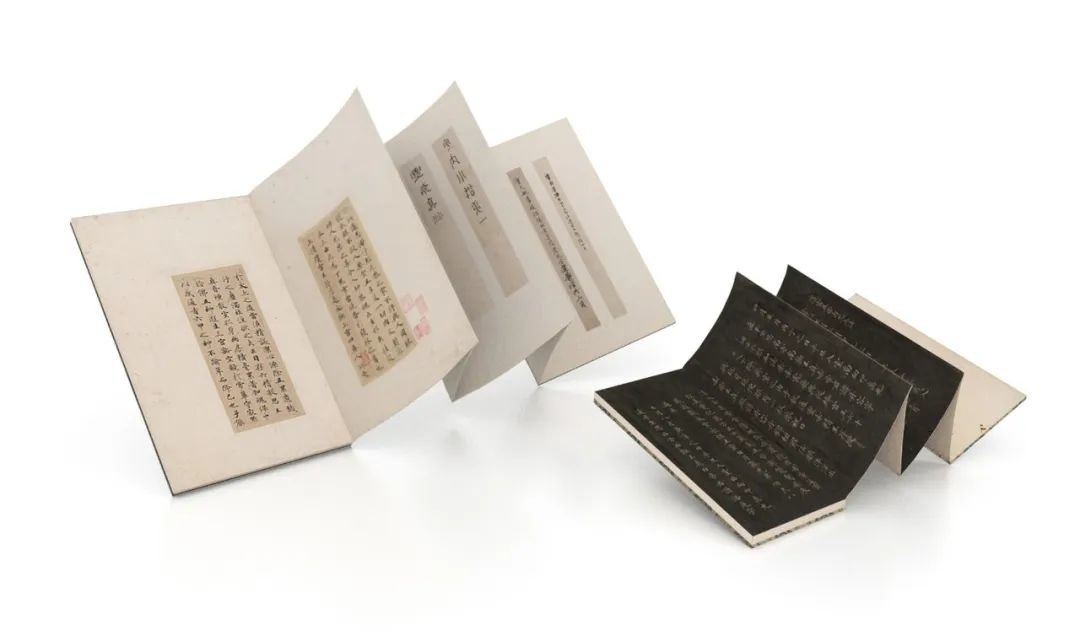 墨迹、渤海本尺寸不一,定制牛卡纸放置渤海本,既保存了渤海本原来的尺寸,又可贴合放置同一函套,制作新颖。