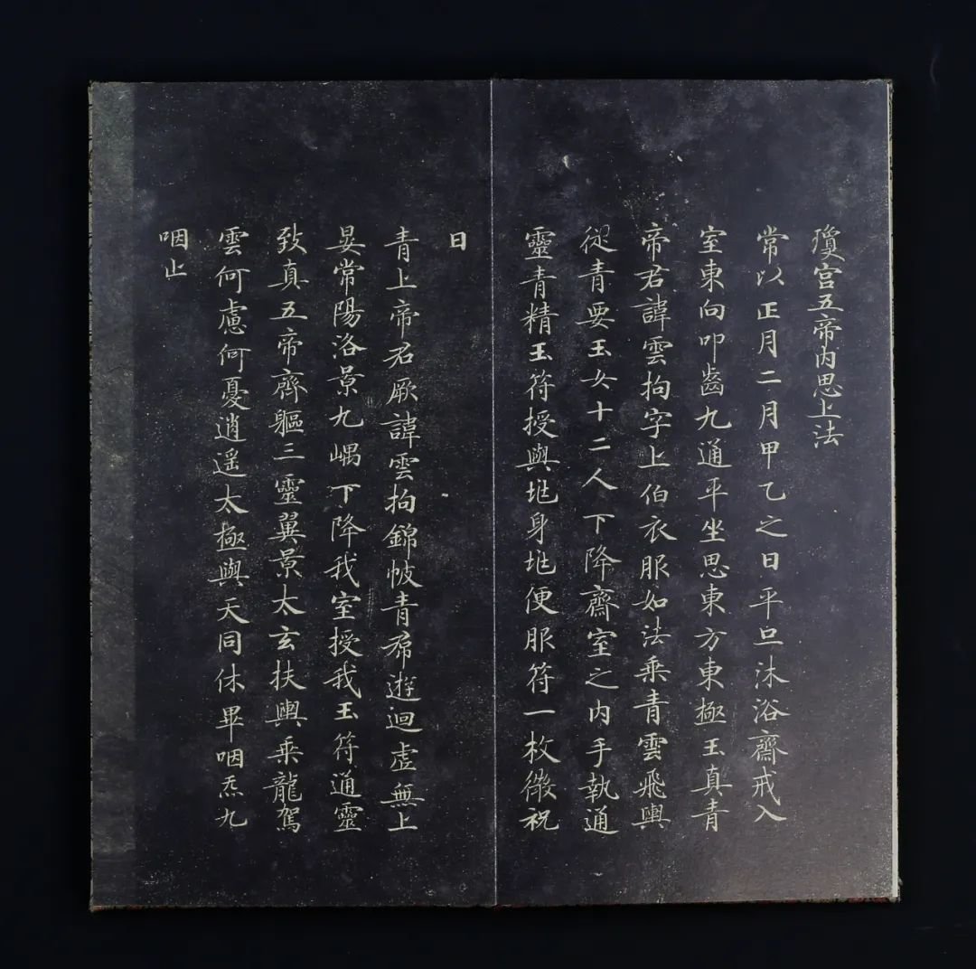 在唐人所书《灵飞经》原貌已不可考知的情况下,仅就《渤海》所刻,并合此四十三墨迹中《渤海》未刻之十二行,是经分为三部分:一为《琼宫五帝内思法》,二为《灵飞六甲内思通灵上法》,三为《上清琼宫阴阳通真祕符》。其内容是传授道家存思五帝及六甲玉女的修炼法门,是道教上清派的一种经典。今收在《正统道藏》中的《上清琼宫灵飞六甲左右上符》《上清宫灵飞六甲录》《洞玄灵宝六甲玉女上宫歌章》三种皆与该经高度相关。论者谓,它们很可能都是源出于自东晋即已流传的《上清素奏丹符灵飞六甲》(参许蔚《唐人写本〈灵飞经〉与〈上清素奏丹符灵飞六甲〉的复原》)。