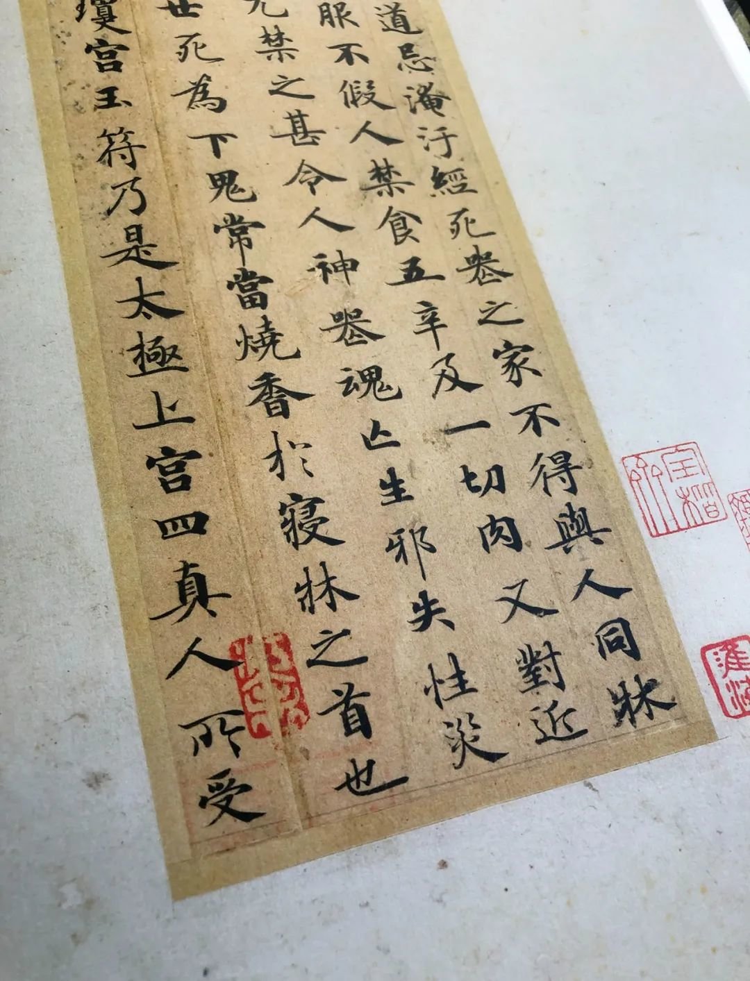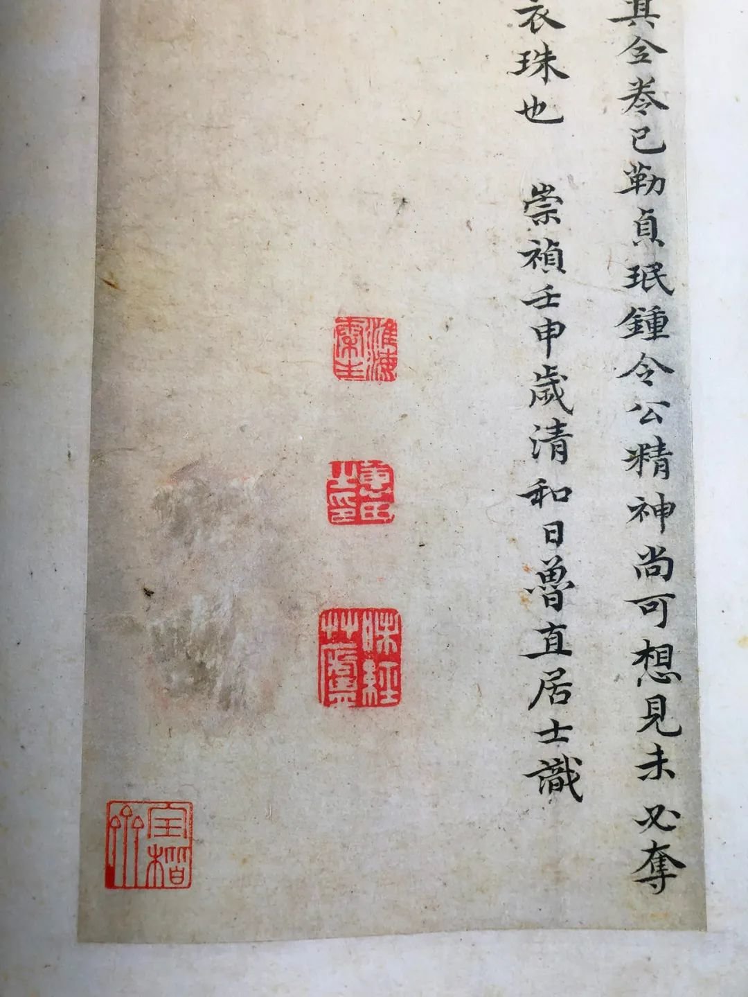 该卷原有题记曰:“大唐开元廿六年太岁戊寅二月己亥朔一日大洞三景弟子玉真长公主奉勅检校写。”玉真长公主为唐睿宗李旦第十女,早岁即入道女冠,《新唐书》卷八十三有传。是卷至北宋徽宗时入藏于内府。从开元二十六年至北宋末年,中间有三百余年之久,其流传不可考。入元后为史德珪收藏,袁桷、倪瓒皆有跋,入明后一度为宜春吴氏所藏,所又转归吏部尚书王直。董其昌于万历三十五年(一六〇七)“得之吴太学”。