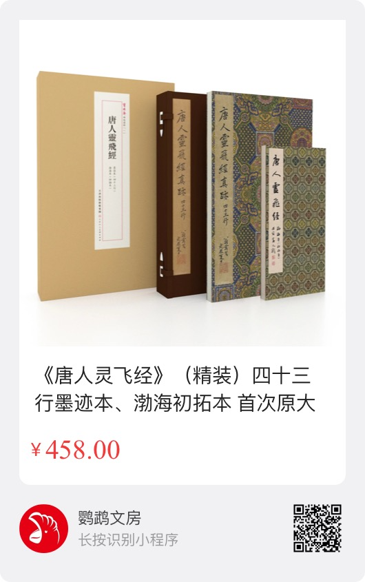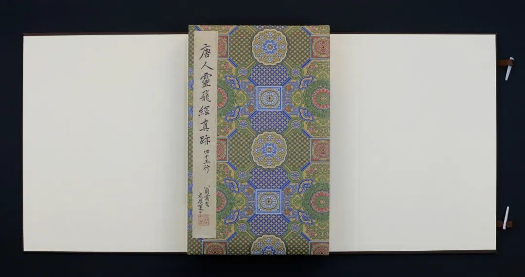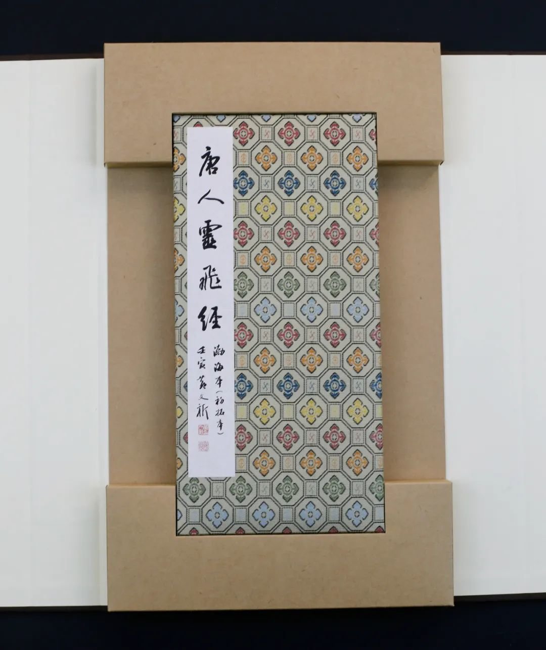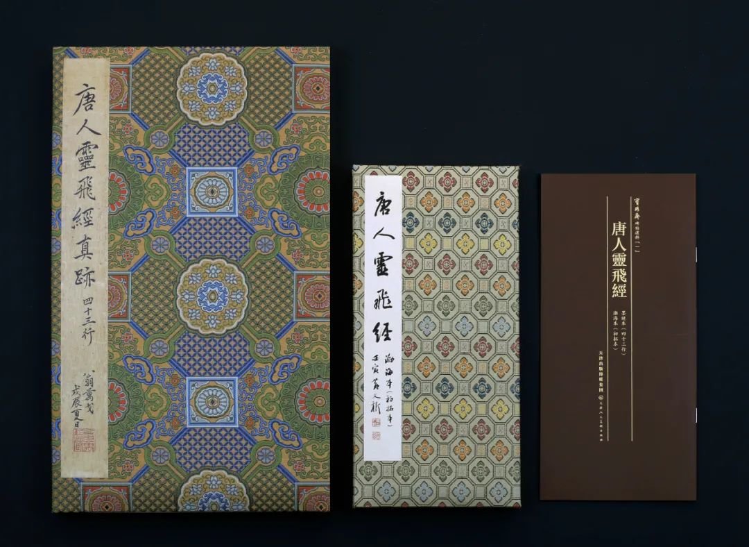 《唐人灵飞经》精装本采用中式布面四合函套,二册一函,墨迹本依底本封面图纹定制锦缎,装帧方式为蝴蝶装,附解说副册,初版印量一千部,现货发售,外带定制运输盒防撞保护,给爱书人更放心的服务。