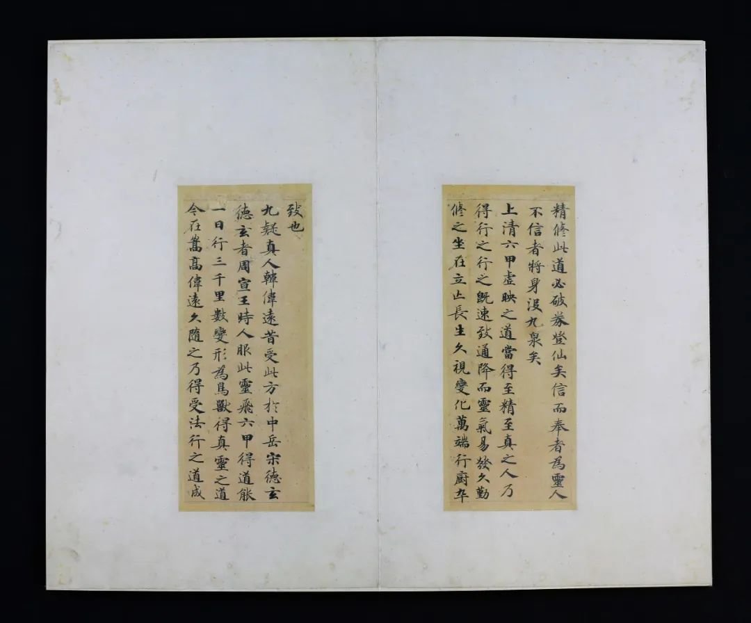 这四十三行墨迹最早披露于上海人民美术出版社一九八七年出版的《艺苑掇英》第三十四期中,该期为“翁万戈先生珍藏书画专辑”。四十三行墨迹悉数印出,灰度影印,略有放大,前后题跋则付阙如。那次披露,还专请启功先生撰写了《记〈灵飞经〉四十三行本》一文,以配合图版。至此,此四十三行墨迹之真面及下落始广为人知。后来上海书画出版社的《中国碑帖经典》丛书收入此四十三行墨迹,大约就是用《艺苑掇英》旧版印的,影印方式及图片尺寸一同于《掇英》。二○一八年,宝玥斋出版了此四十三行墨迹的原色原大本,然前后题跋依然未印,对于研究欣赏而言,仍有缺憾。此次复将此四十三行墨迹包括前后题跋,悉数以原大原色标准进行复制。另影印《渤海藏真帖》所刻者为附册。所影印之《渤海》本为九雁斋藏“斋室”不损之初拓本。凡此种种皆嘉惠学林艺林不浅。爰为简介如上。