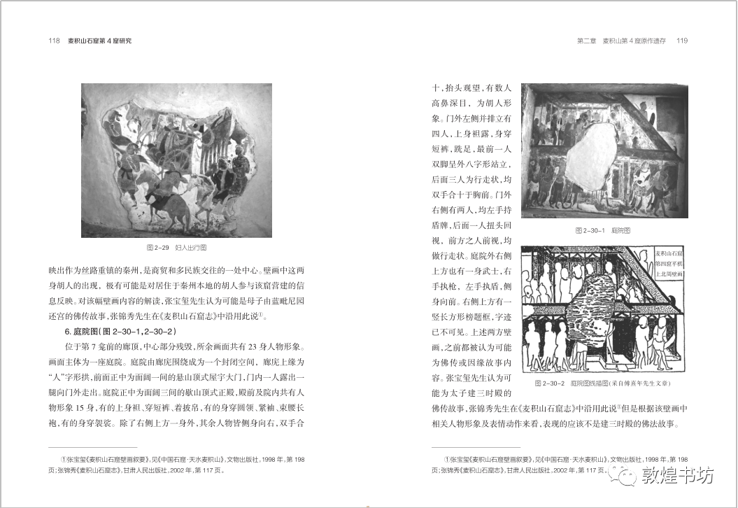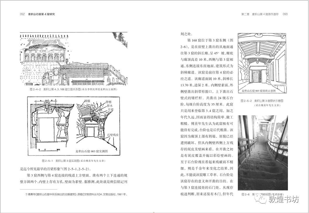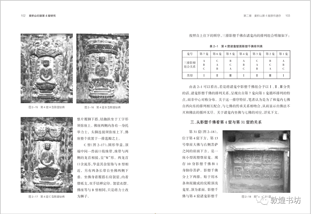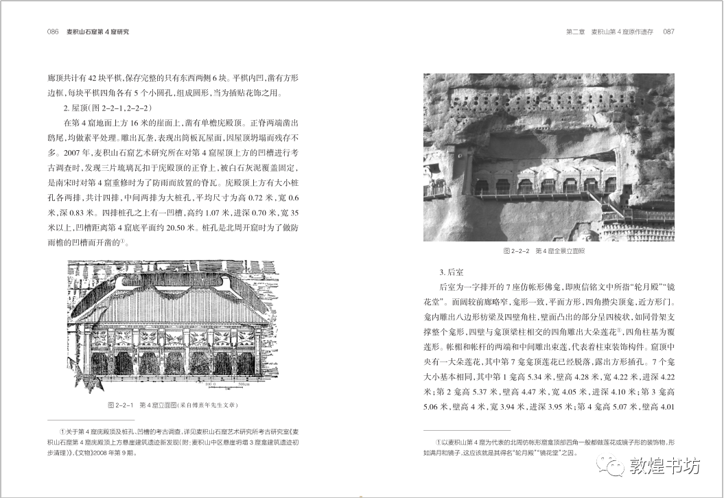 选择单个洞窟为研究对象,离不开扎实而详细的调查。对洞窟建筑、造像与壁画、题记等的准确释读,是展开研究的基础工作。对于麦积山第4窟来说,不断地重修造成该窟的复杂性。本书的第二章和第五章在调查的基础上分别对北周原创的作品和历代重修的作品做了辨识,这有利于对整个洞窟从北周到明清的变化的了解。这些遗存虽然共存于整个洞窟中,但如不加以认真观察,是难以辨识的。对遗存年代的判断是研究工作的基础。作者在调查中发现该窟可能存在隋代重绘的现象,这是之前一直没有发现的现象,这也为今后做进一步调查分析提供了重要的信息,值得重视。