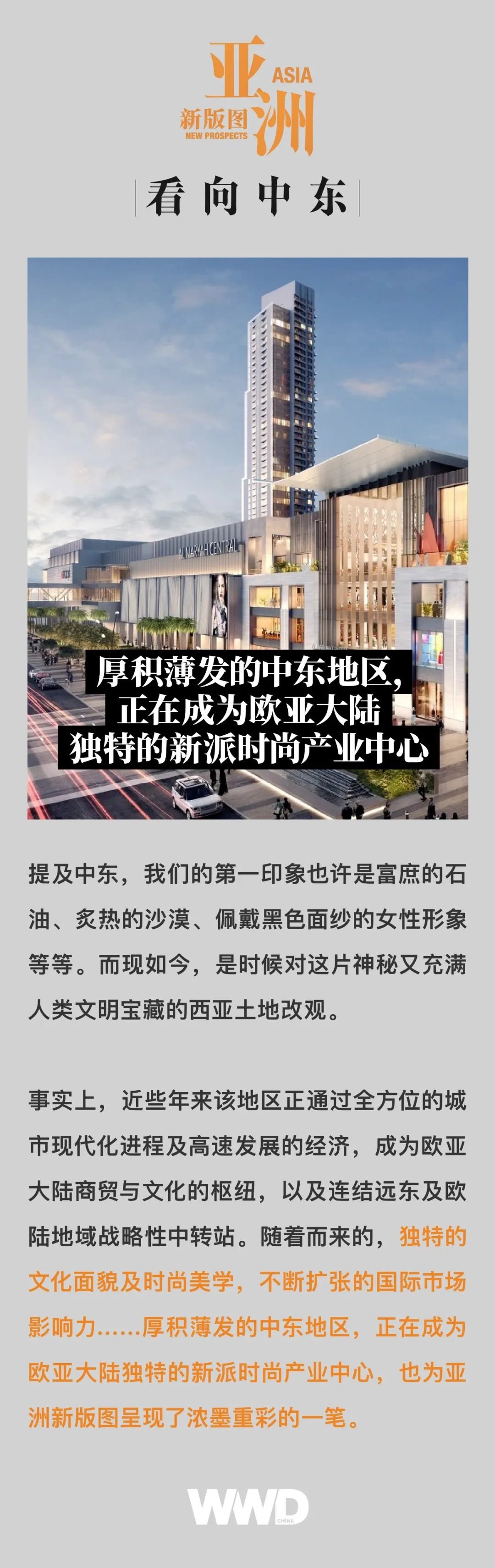 从投资、设计、零售,中东地区在时尚领域均展现出了备受全球瞩目的势头,这块神秘而复杂历史背景的区域,正以积极的姿态融入国际时尚产业的各个领域。凭借海湾地区可观的经济实力,中东地区正厚积薄发,成为未来欧亚大陆核心地区最迷人的新派时尚产业中心。