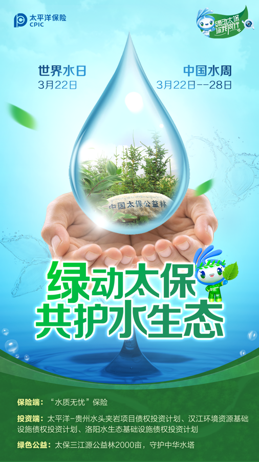 水资源是人类生活的重要基础,也是保护生态环境和人类健康的关键。中国太保一直关注水生态保护,践行绿水青山就是金山银山理念,发挥专业优势,以守护生命之源的责任担当,助力实现水资源保护和可持续利用。
