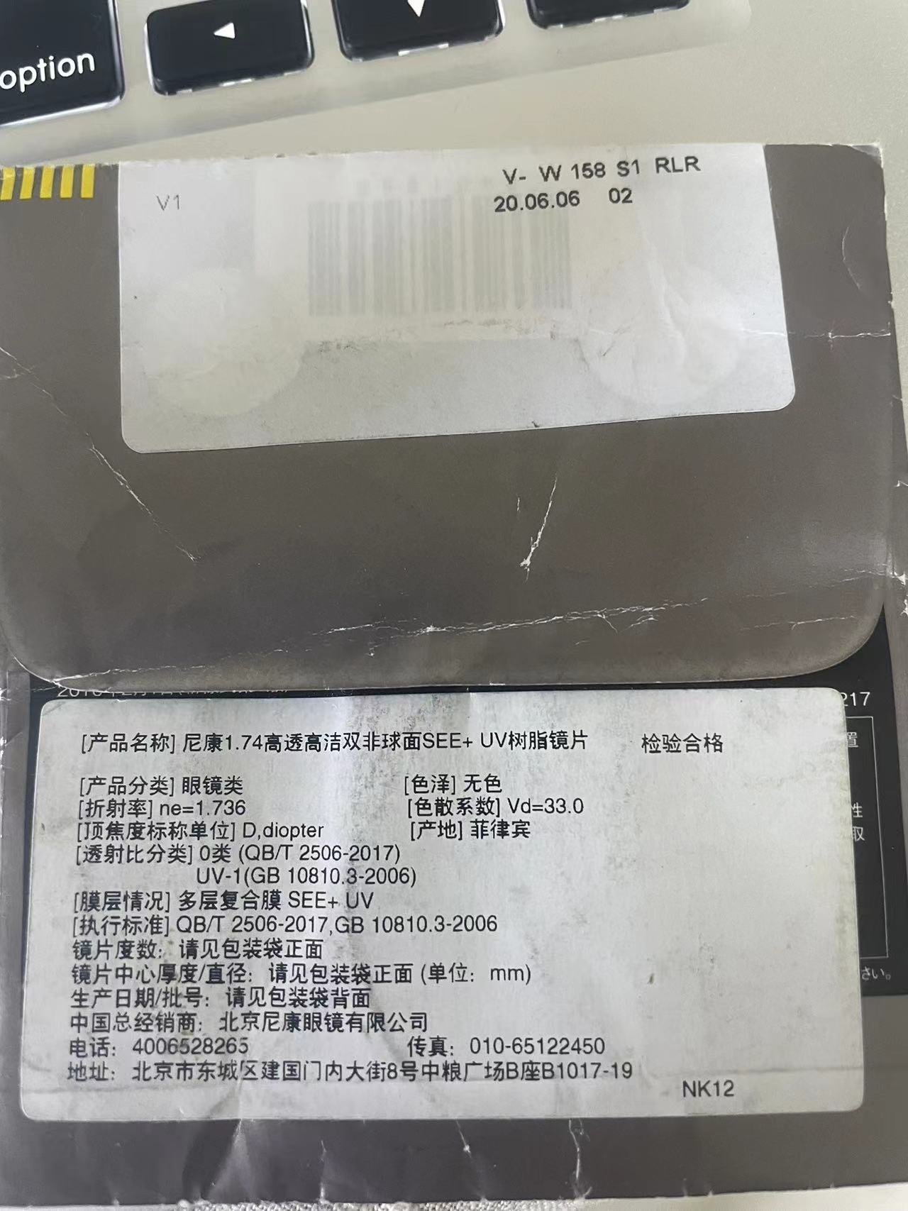 至于发票,因为没有当时的发票,今年2月7日王先生去店内打印了他购买眼镜时的发票。他提供的发票显示,其购买的商品名称为“尼康 1.74单光双非球面NL5-DAS 高透高洁UV 库存片 1.740”。