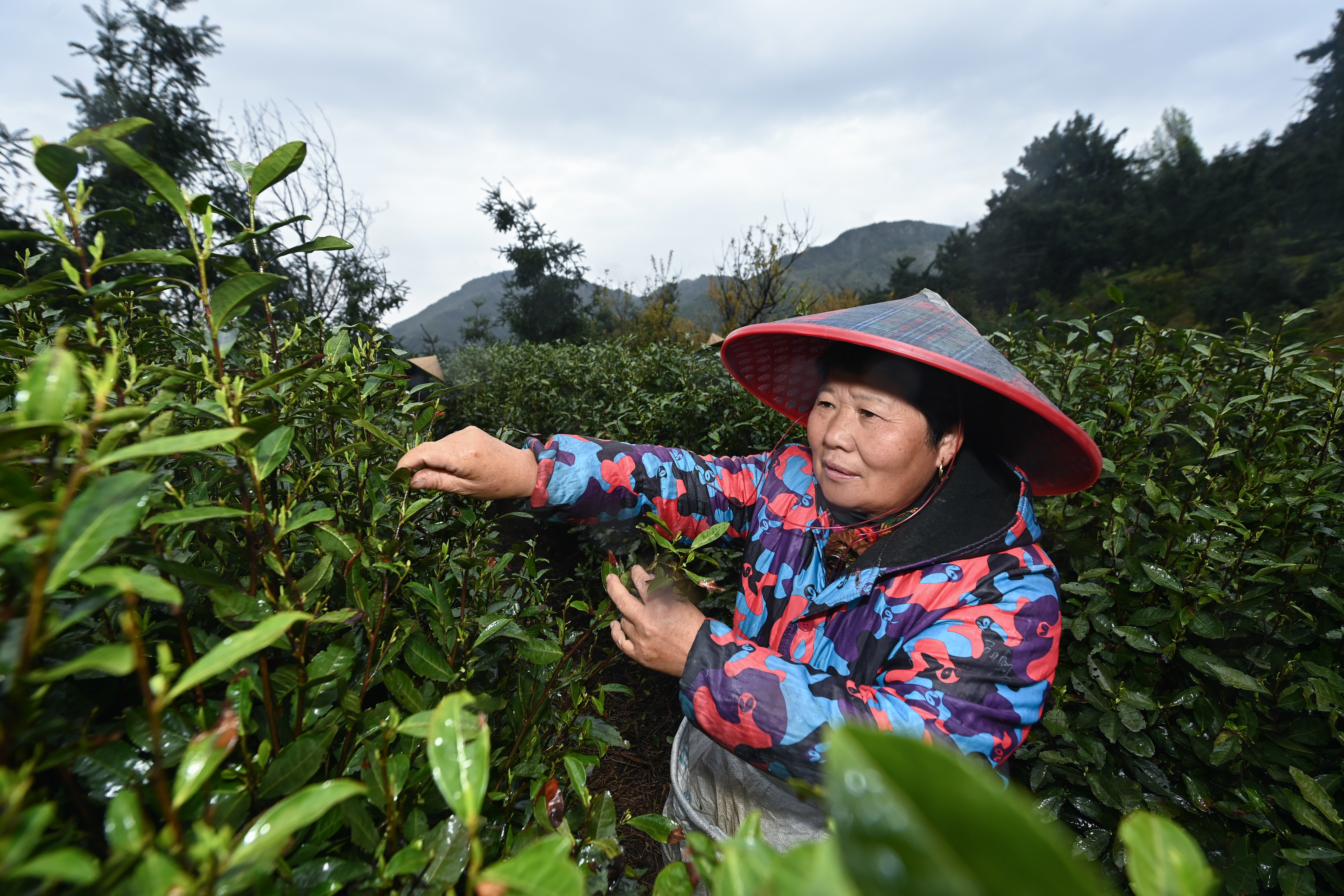 3月22日,赵家镇东庄村上阳自然村的茶农采摘高山有机茶。新华社记者 徐昱 摄