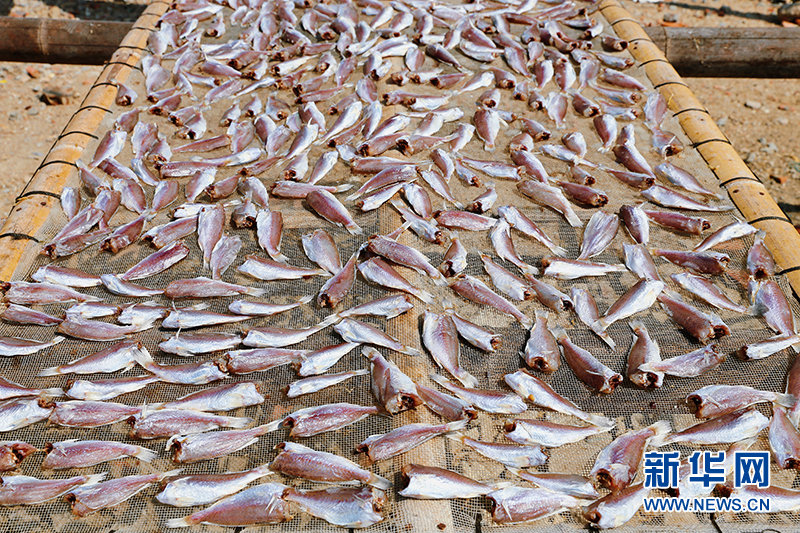 梅联社区内渔民晾晒的鱼干。新华网发(陈静 摄)
