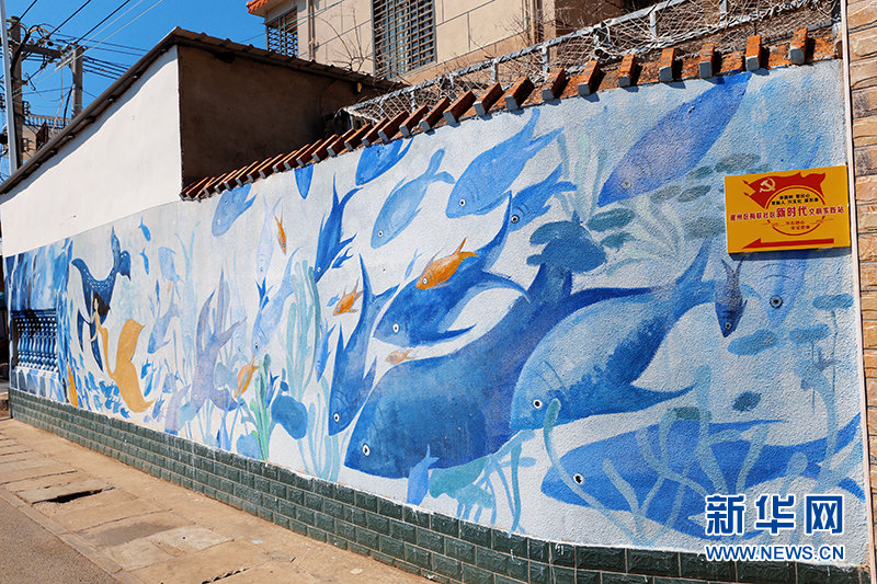 梅联社区内房屋外墙上生动的海洋壁画。新华网 王雯君 摄