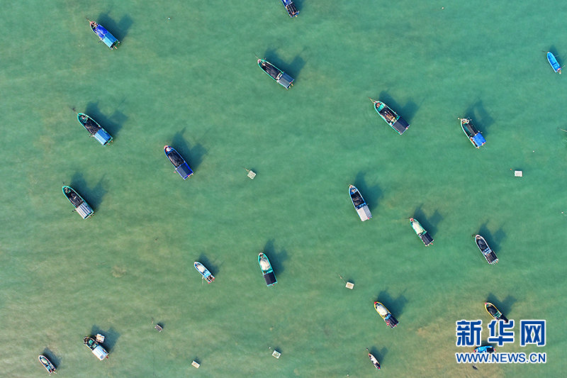 漂泊在海面上的渔船。新华网 王雯君 摄