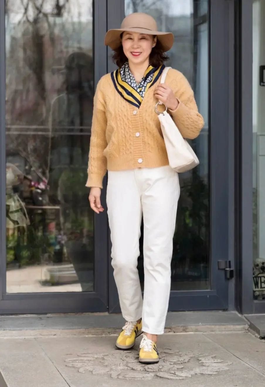 穿着黄色的开衫,搭配白色水洗直筒牛仔裤,看上去效果就很好。接下来的内容,会具体为大家分享3种开衫的穿搭攻略,以及搭配的技巧运用,话不多说,让我们一起来探索专属微胖奶奶的时髦吧!