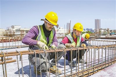 抵达位于巴格达南部的城市纳杰夫,正午的阳光十分灿烂。一栋正在建设的混凝土建筑被严密规整的脚手架托起,工人们两两一组在捆扎钢筋。这是中国电建集团(以下简称“中国电建”)伊拉克示范学校纳杰夫省的一个项目现场。
