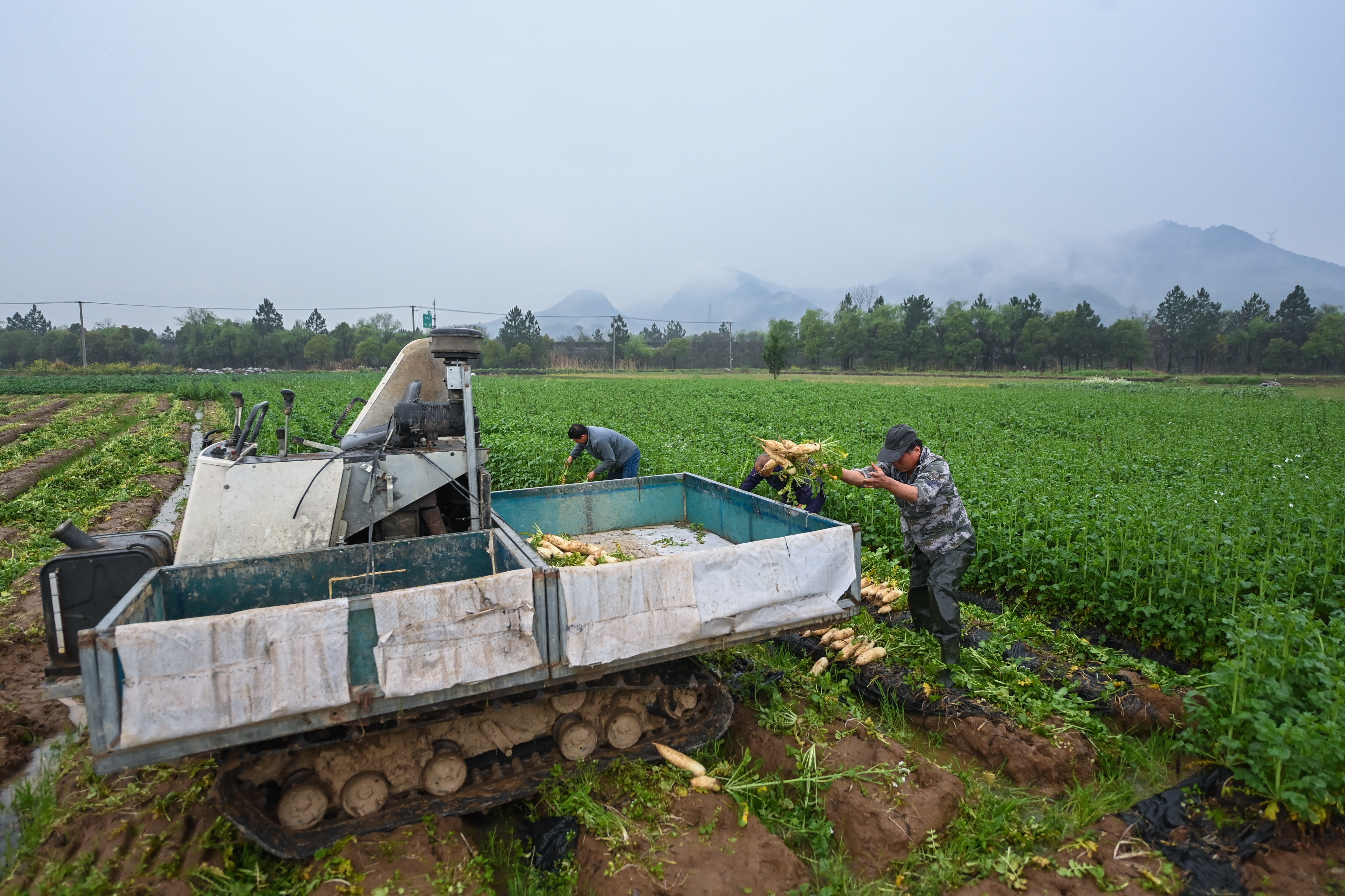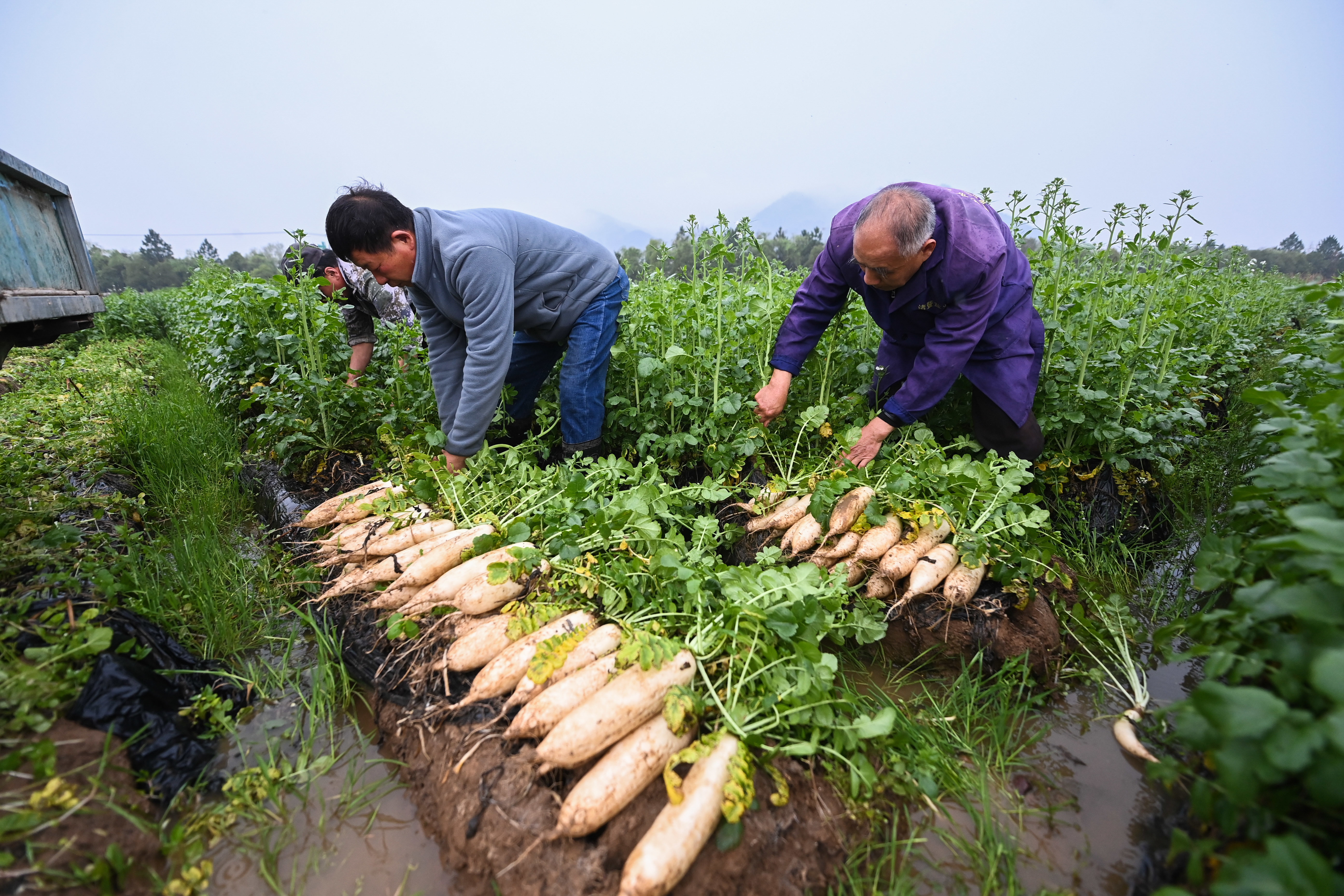 3月23日,种植户把采收的萝卜装车运往加工点。 新华社记者 徐昱 摄